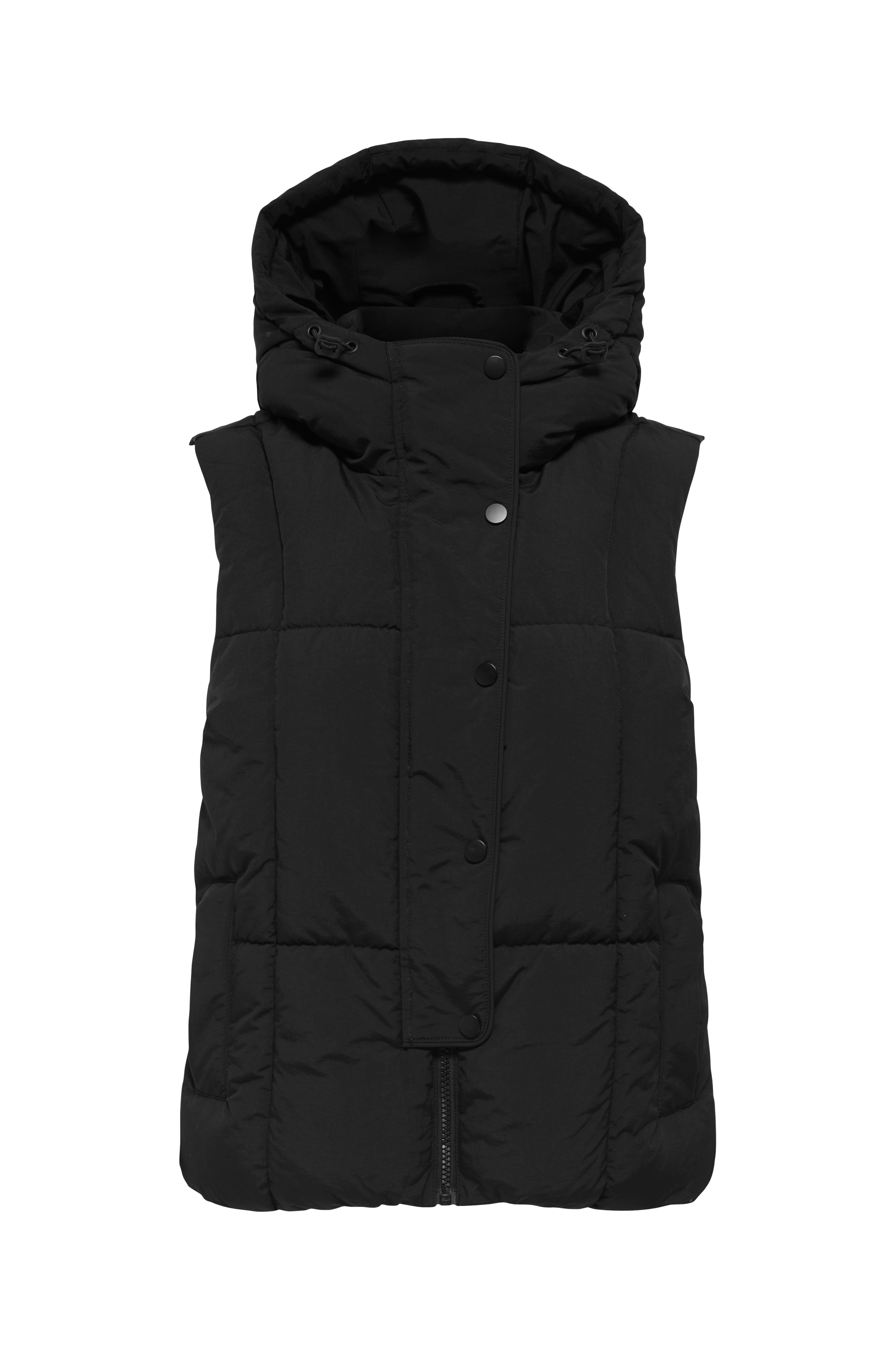 • Kort, tykt polstret vest med justerbar hette• Glidelås foran med klafflomme og trykknapper• Sidelommer• Glatt, vevd foring• Lengde: 54 cm i størrelse S