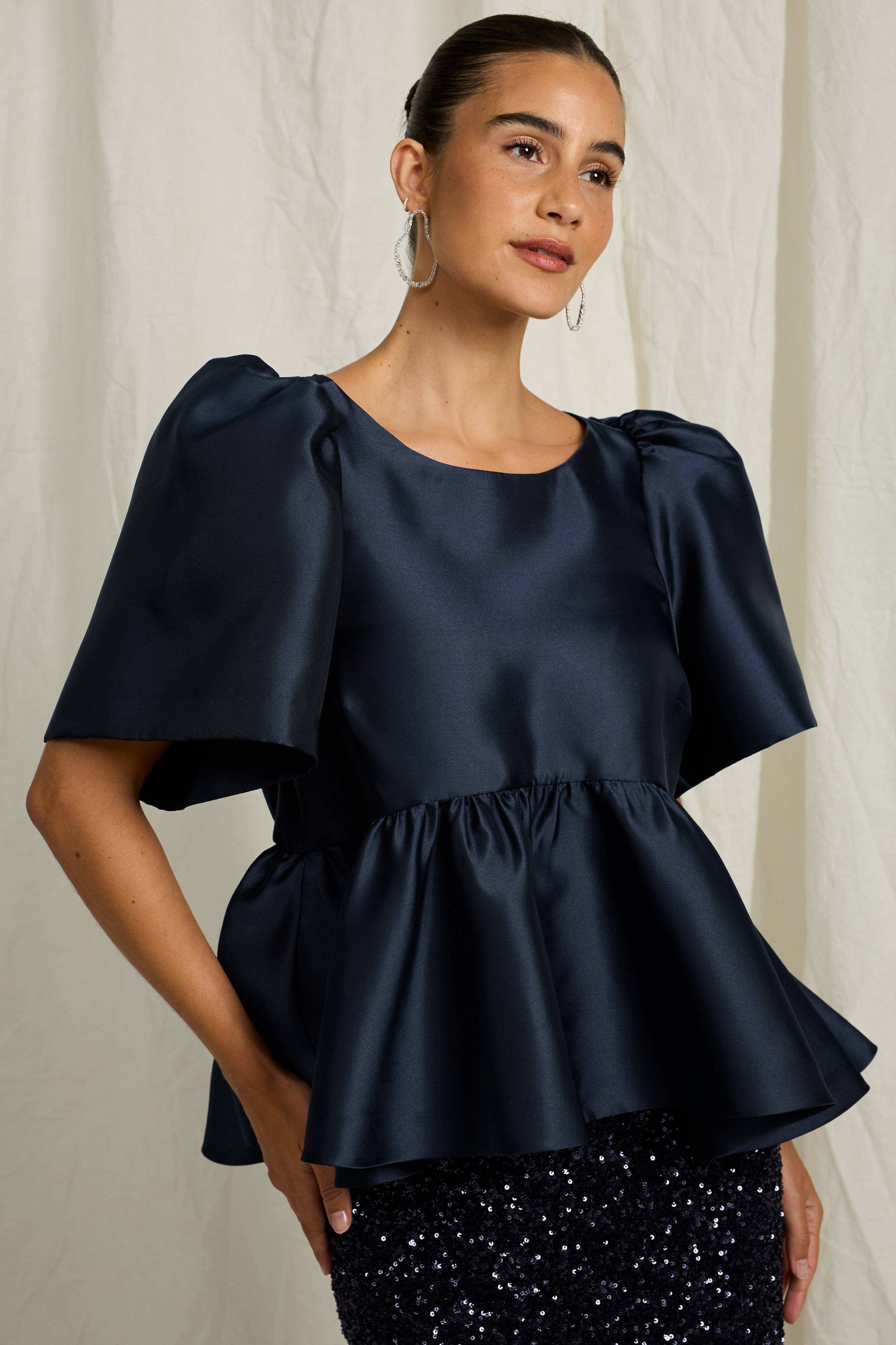 Joelle Satengbluse med peplum