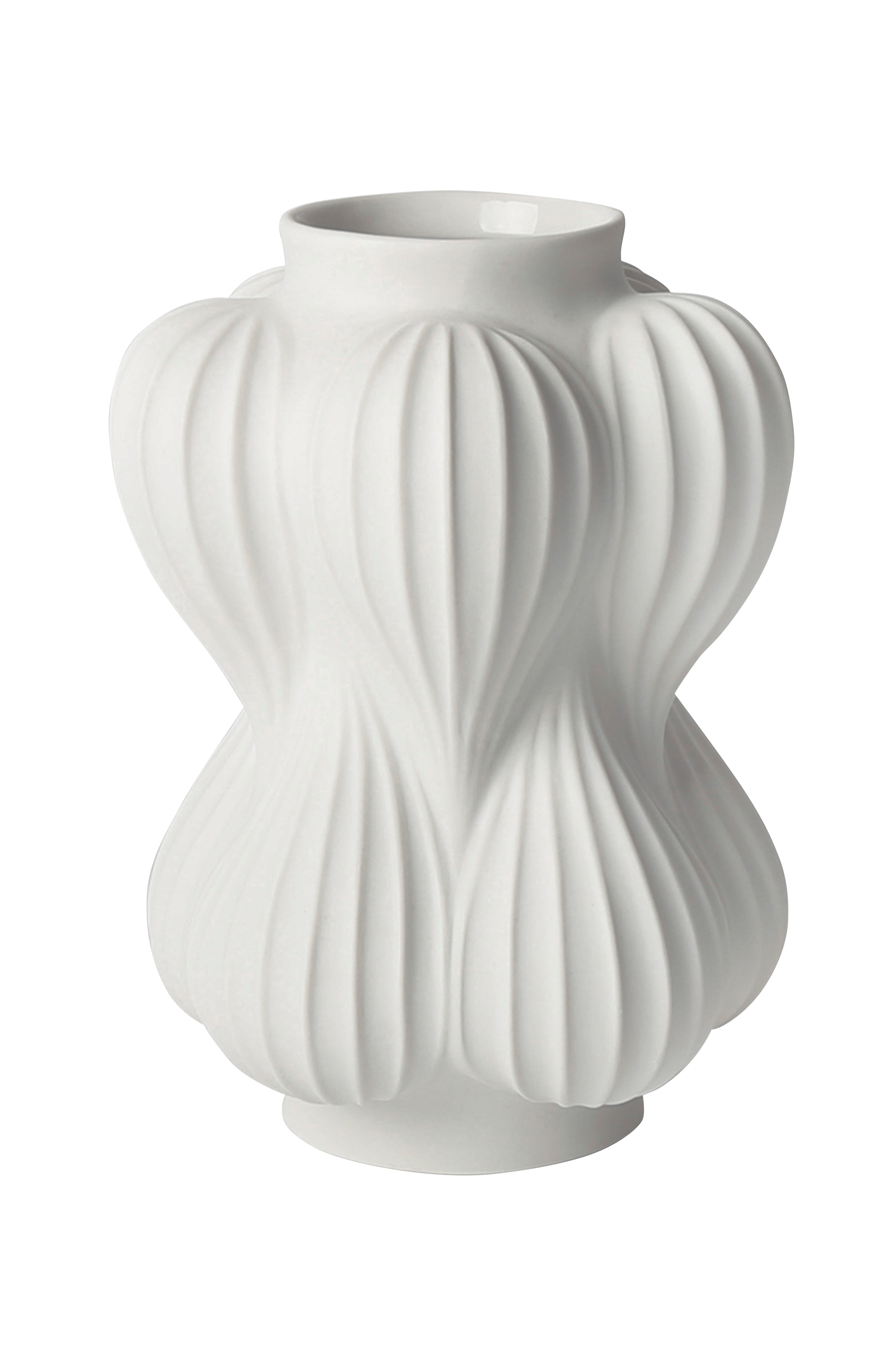 Inspirasjonen til vasen Balloon er hentet fra naturens underverk med en ekstra dybde og nye dimensjoner. Formene er bølgende og moderne i matt keramikk. Vasen rengjøres best med såpe, vann og en myk klut. Høyde 21 cm, diameter 14 cm.