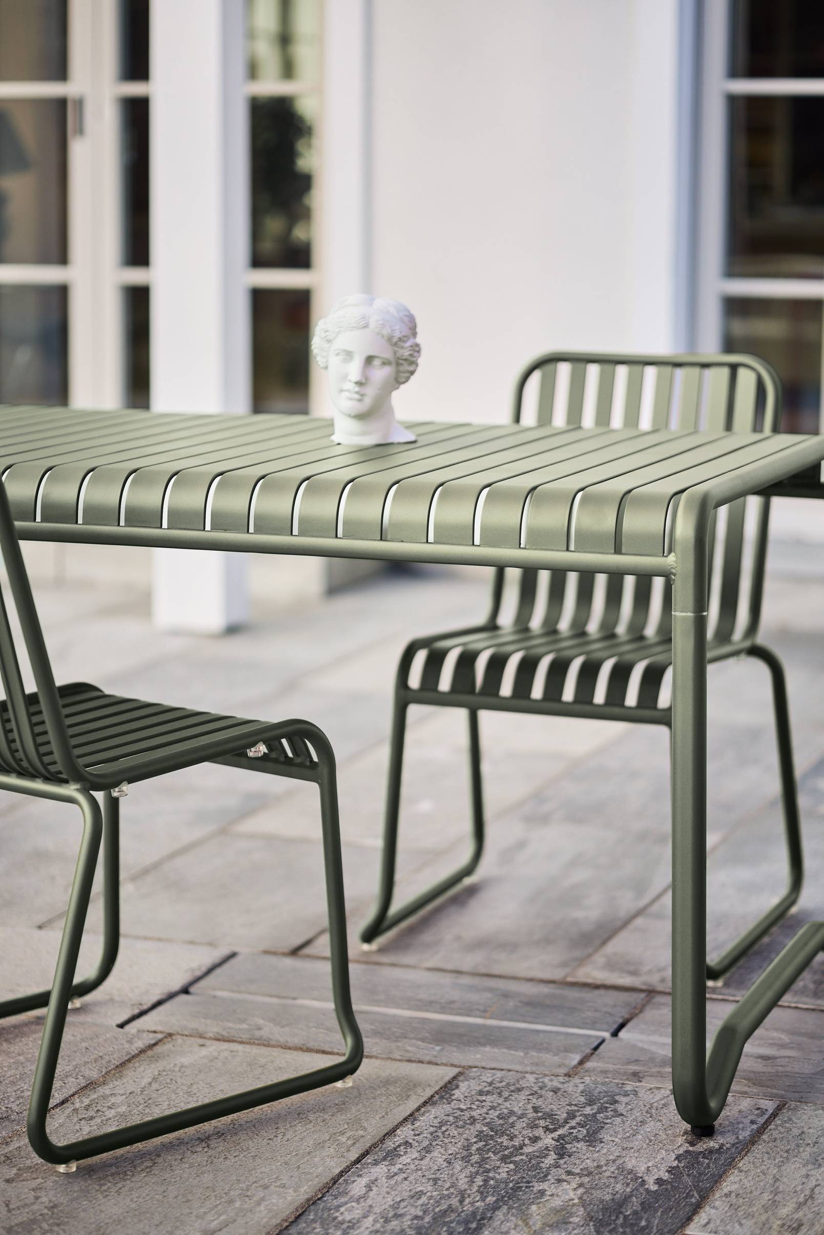 Rektangulært bord produsert av aluminium med pulverlakkert overflate. BELLEVILLE har en stilren, enkel design som gir et tidløst uttrykk. BELLEVILLE passer perfekt for å skape en koselig atmosfære på terrassen eller ute i hagen. Aluminium er et praktisk materiale utendørs. Det tåler vær og vind, og ruster ikke. Noe montering kreves. Monteringsanvisning medfølger.