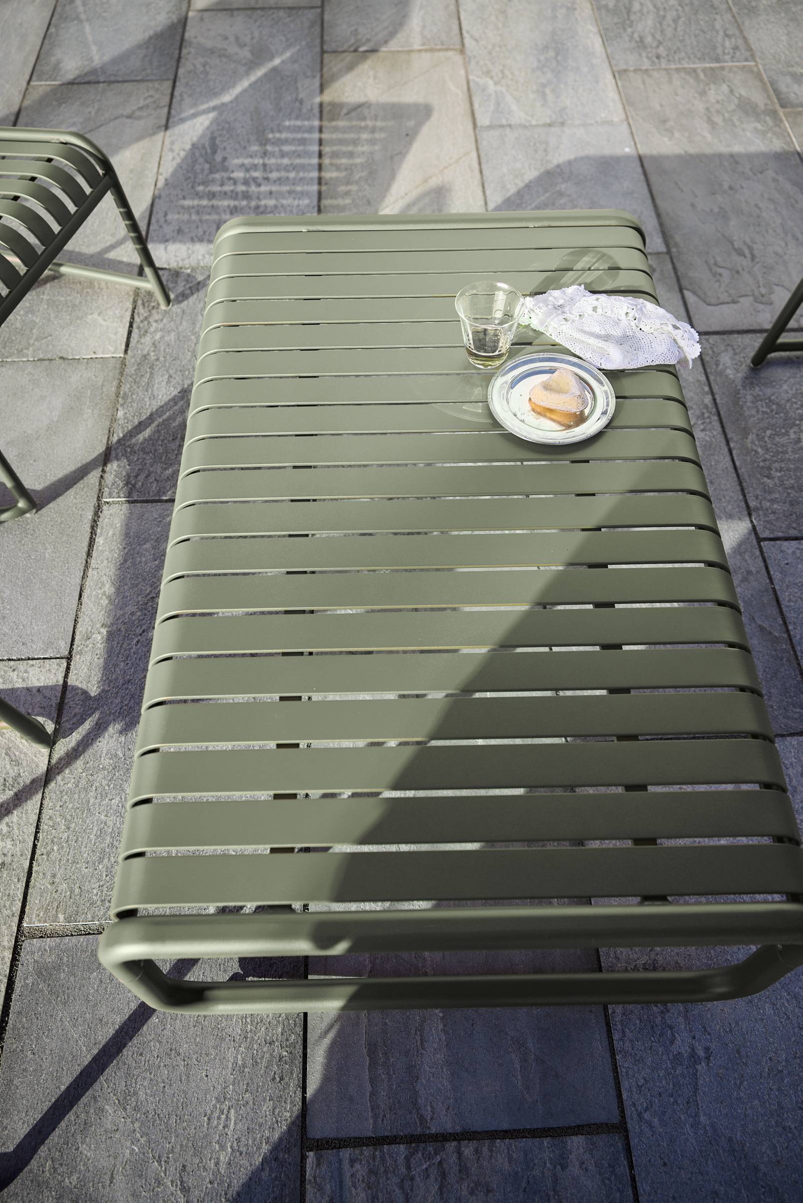 Stilrent sofabord i enkel design som gir et tidløs uttrykk. Passer perfekt for å skape en koselig atmosfære på terrassen eller ute i hagen. Aluminium er et praktisk utendørs materiale som tåler vær og vind, og som ikke ruster.