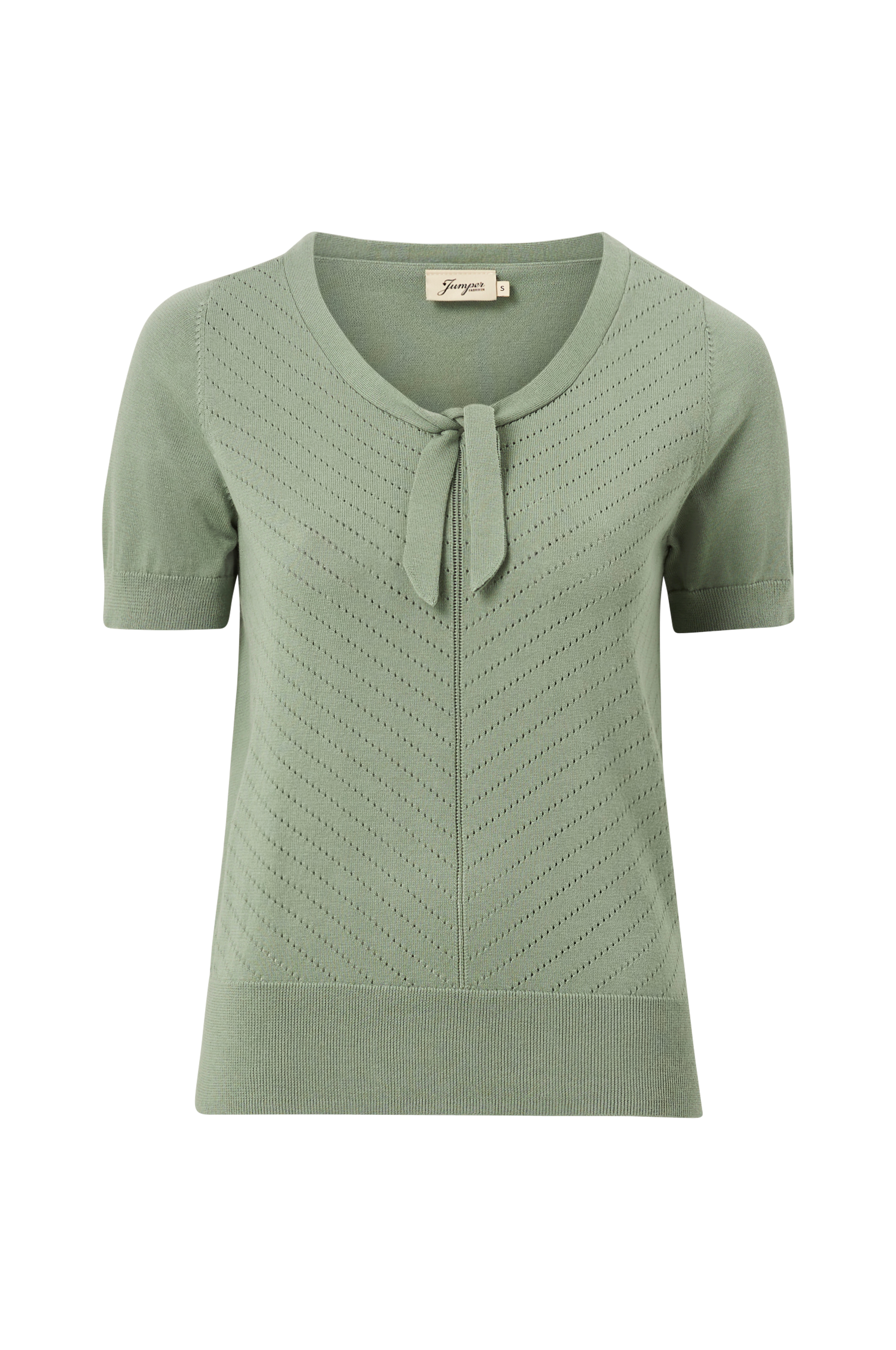 • Korte ermer• Knytbar stropp på halslinjen• Finstrikket kvalitet• Hullmønster foran
