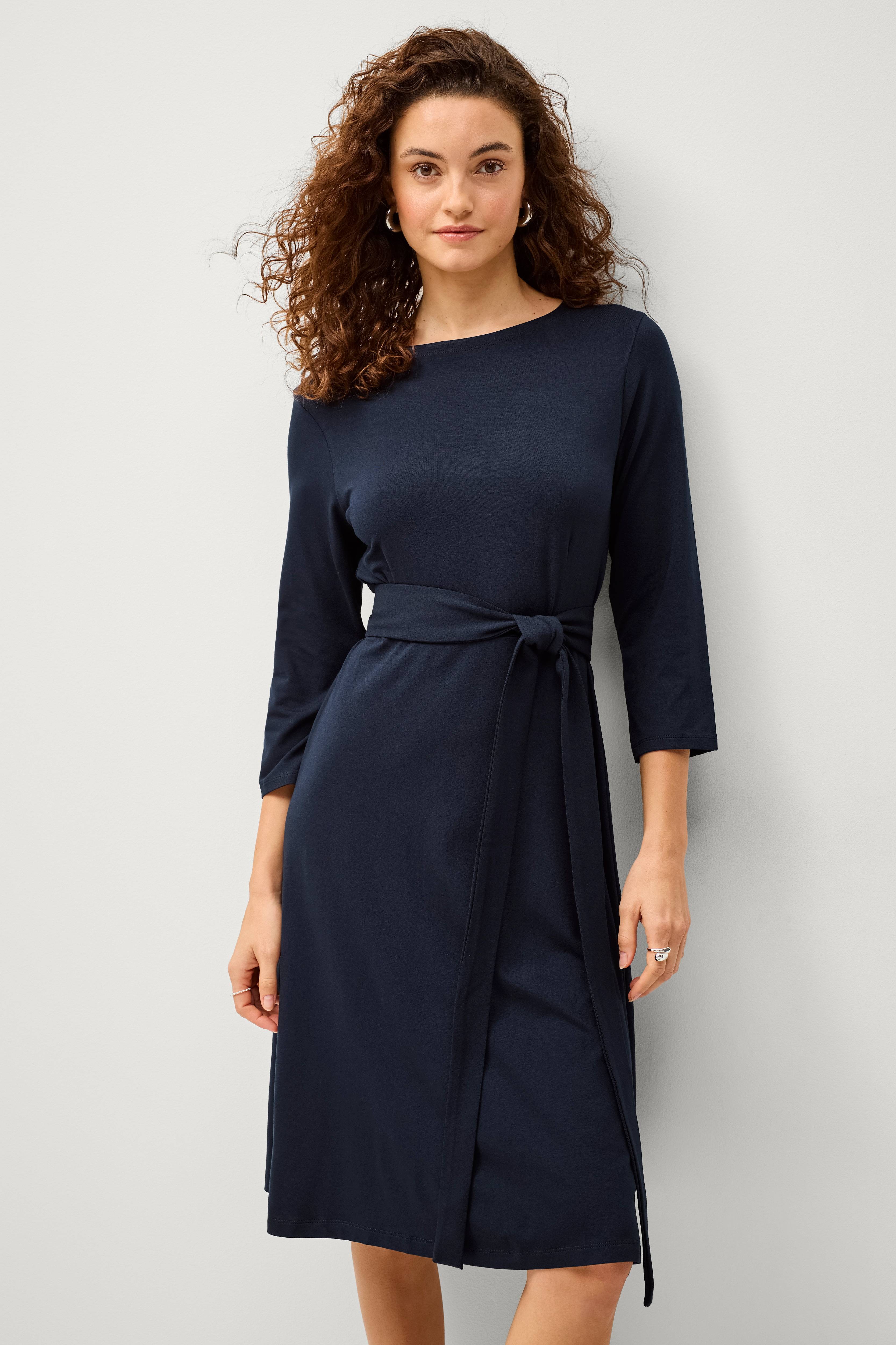 • Utsvingt modell med definert midje og knytbart belte• Rund hals• Erme 3/4 lang• Lengde: 105 cm i størrelse S