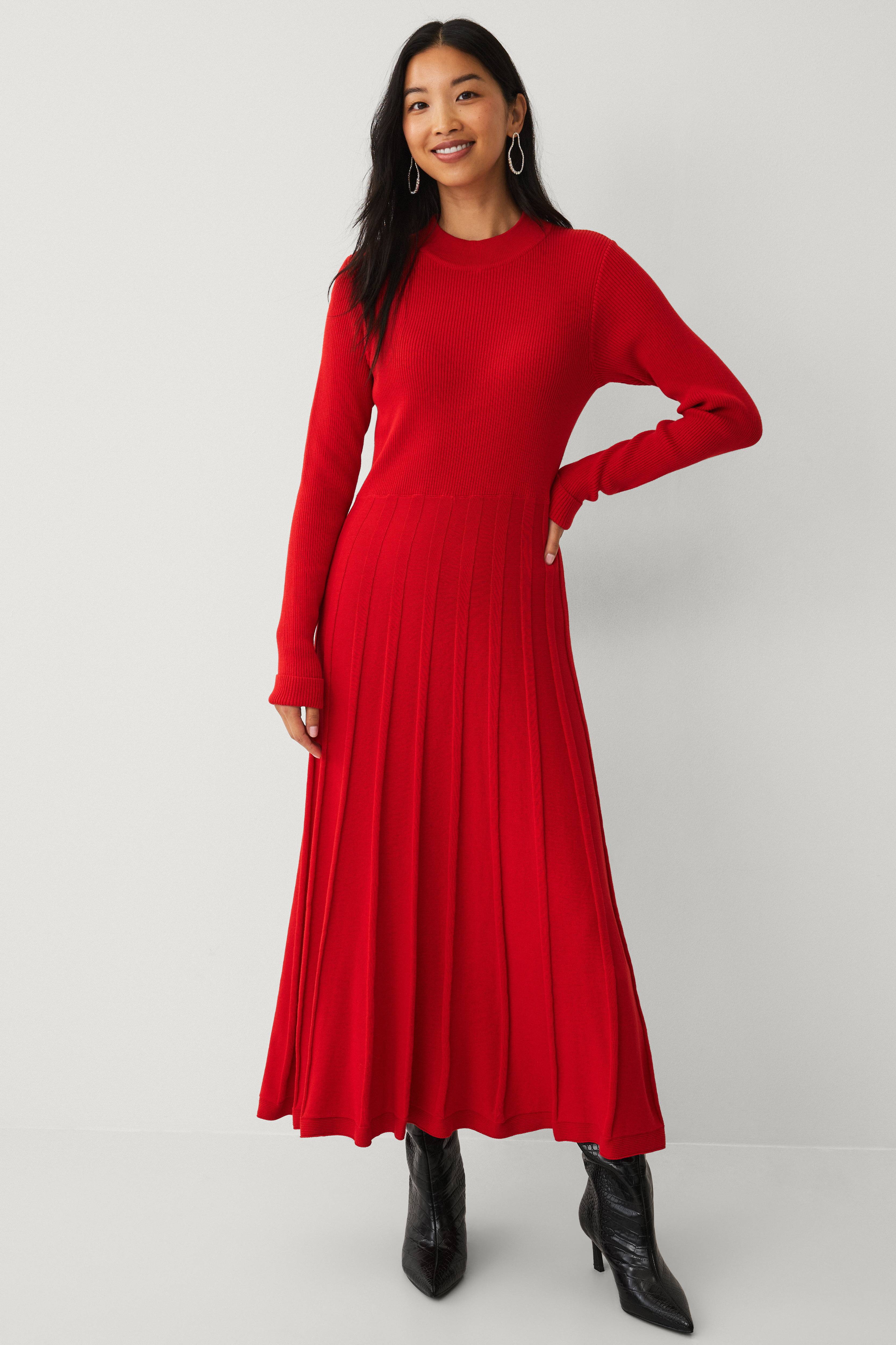 • Finstrikket kjole i bomull• Ribbet, halvhøy hals• Ribbestrikket øvre del• Plissertt skjørt• Lange ermer med opprullede ermer• Lengde: 128 cm i størrelse S