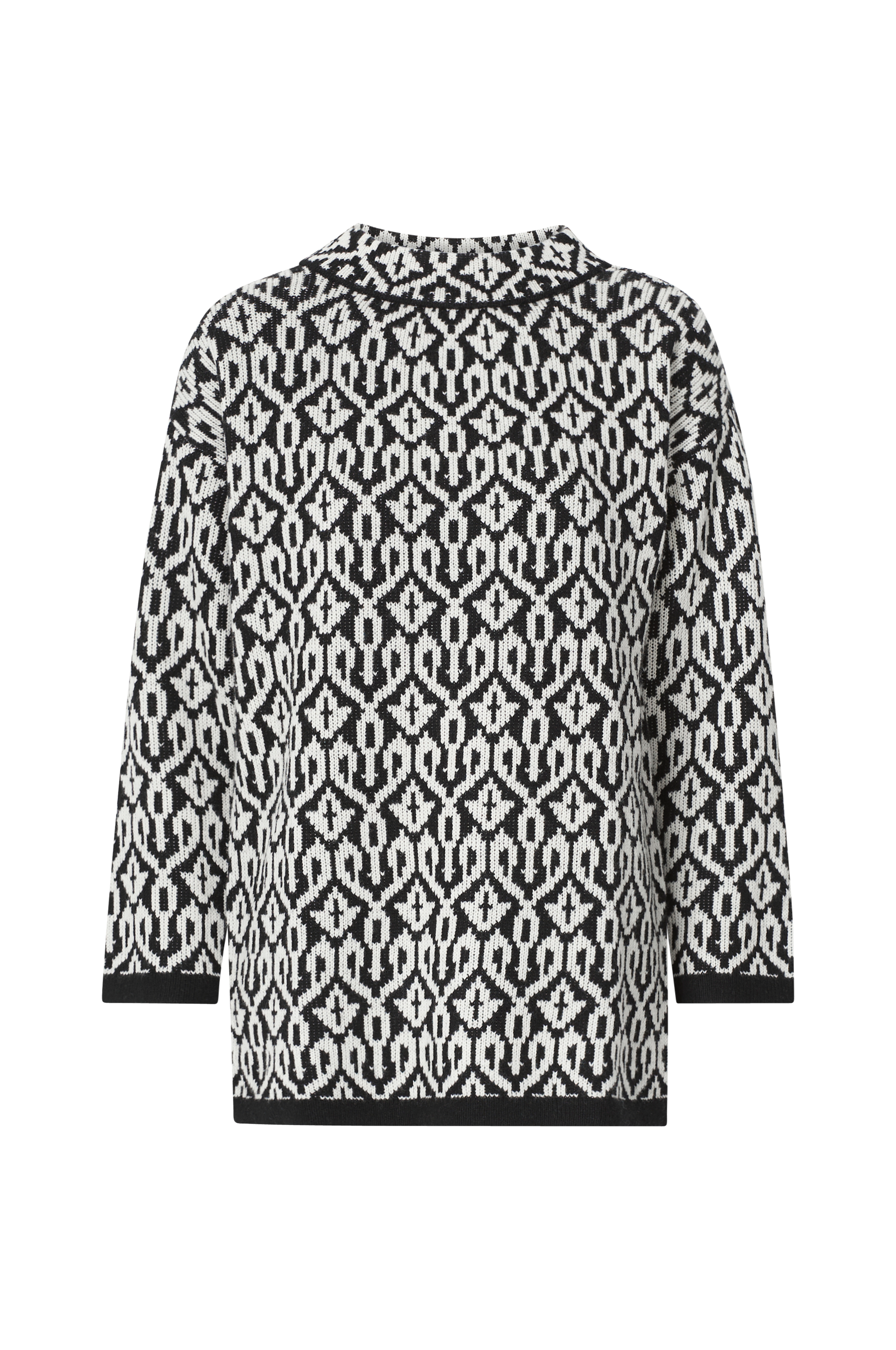 • Strikket, mønstret genser i lammeull• Litt lengre modell• Rett passform• Utringede skuldre