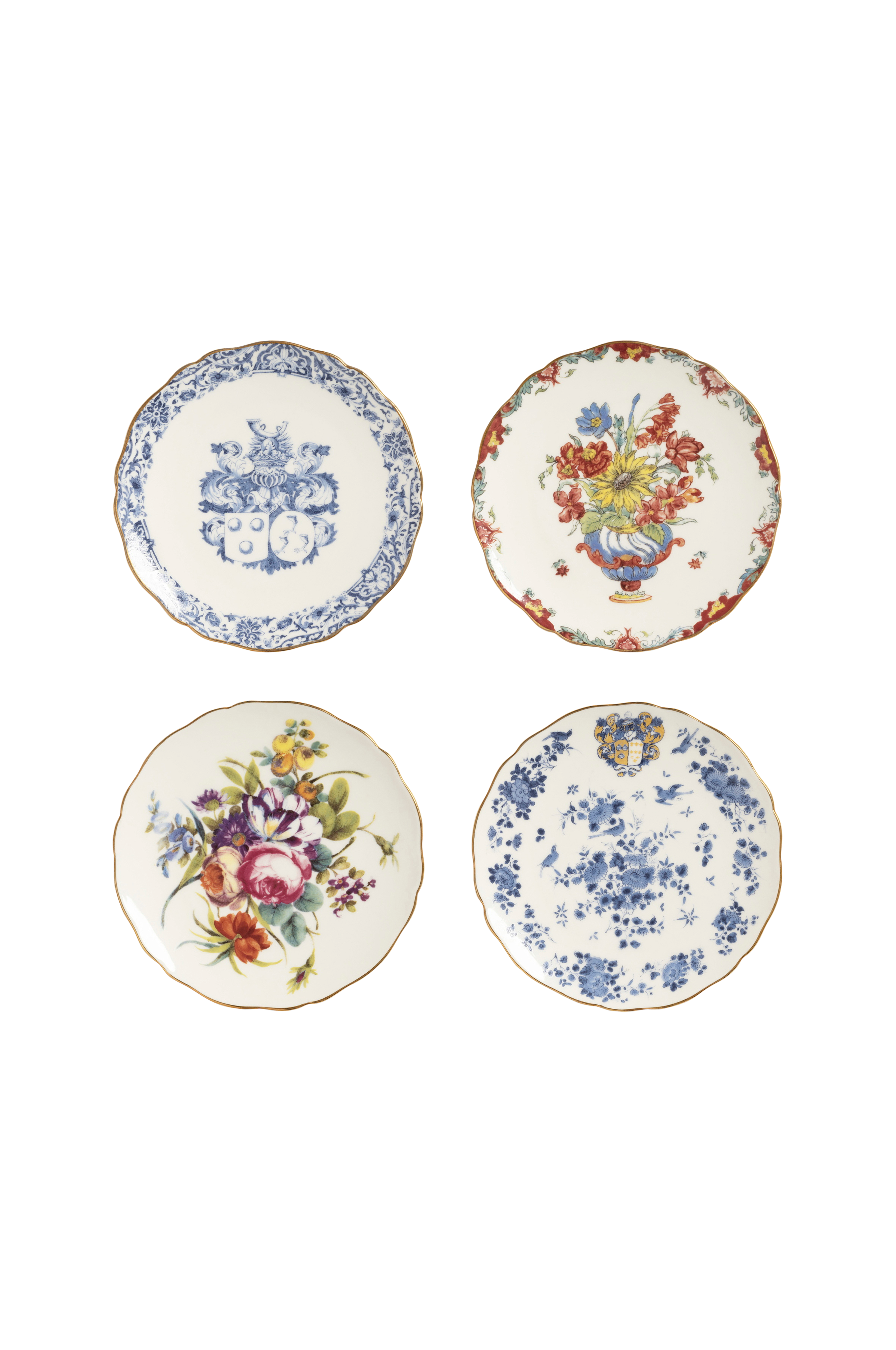Tilfør et snev av historie til bordet ditt med disse vakkert utformede minitallerkenene i porselen, inspirert av 1600-tallets fajansetallerkener fra Rijksmuseums samling. Hver tallerken kombinerer ulike stilarter og gir en moderne vri på klassisk design. Den unike blandingen av mønstre og fajansens tidløse sjarm skaper en sofistikert, men samtidig moderne estetikk, perfekt til servering av forretter, snacks eller som dekorative aksenter i hjemmet ditt.