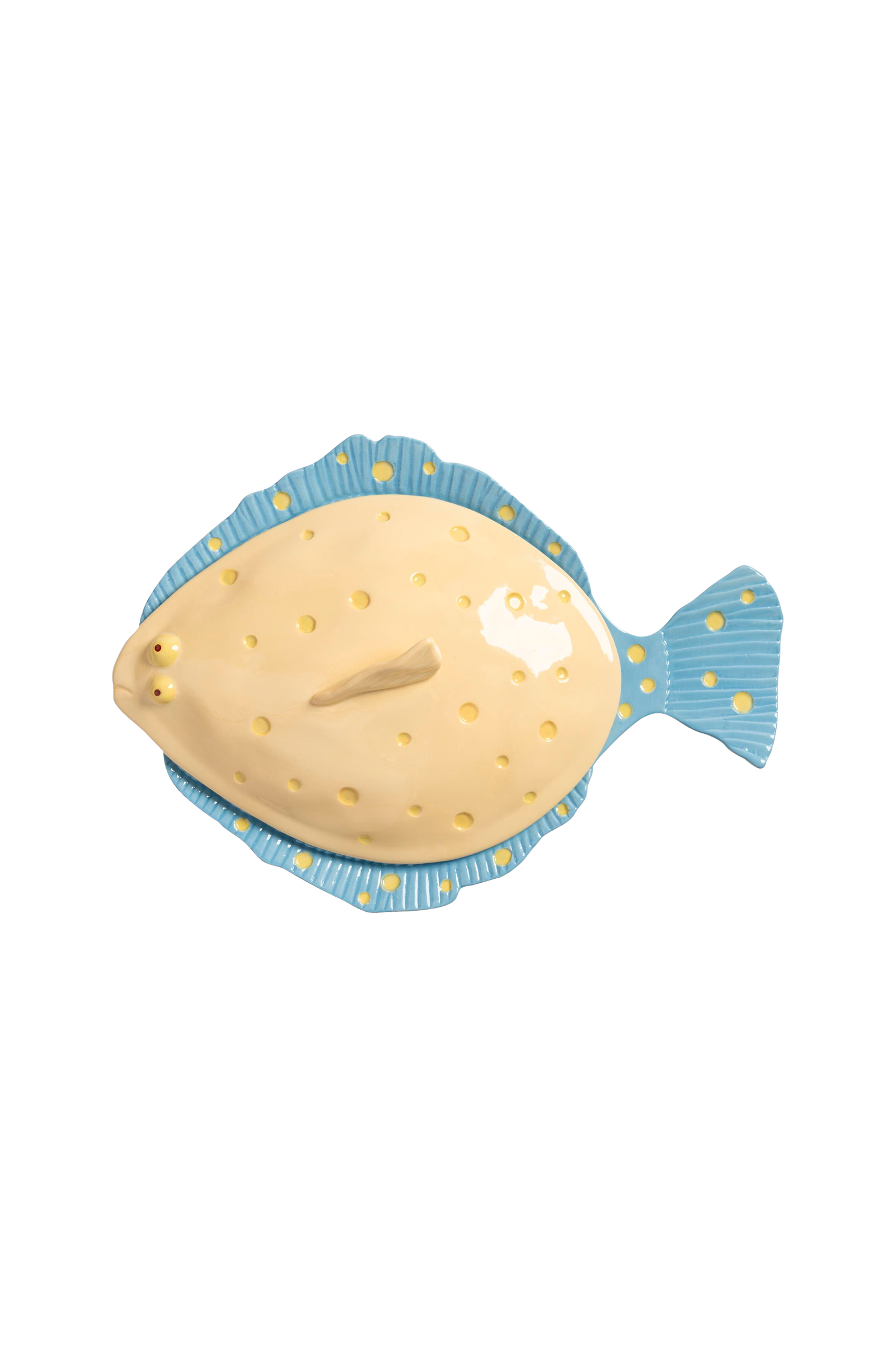 Server rettene dine på en frisk måte med disse fiskeformede fatene med matchende lokk. Hver del har sommerlige farger og et subtilt relieffmønster, noe som gjør at hver middag føles litt mer spesiell. Vårt eget team har håndformet både formene og relieffet, noe som gir hvert fat et unikt, håndlaget utseende. Laget av steintøy. Ideelt til servering av forretter og selvfølgelig sjømat.