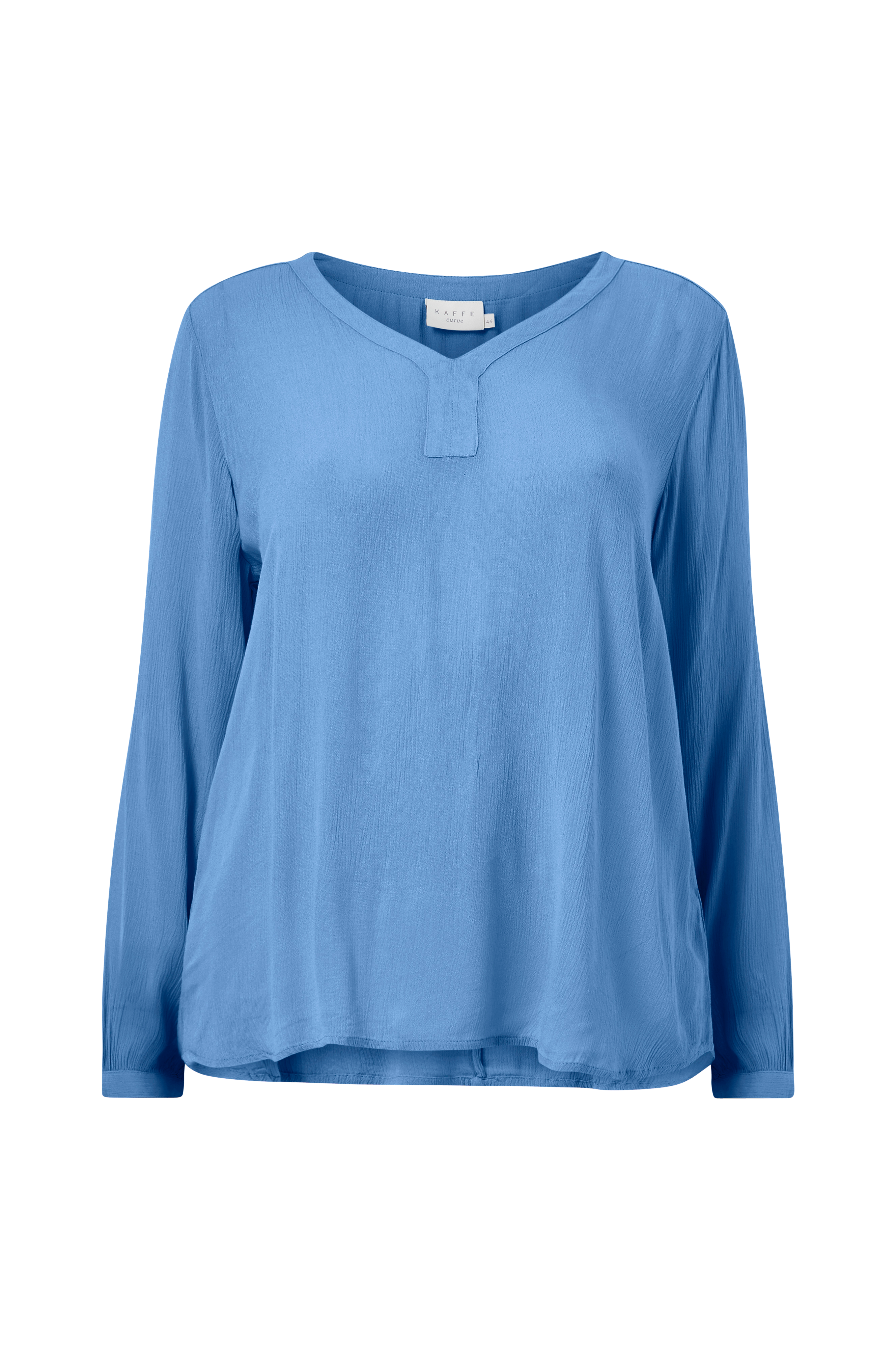 Bluse kCami LS Blouse fra Kaffe Curve i tynn, krinklet viskose. V-utringning foran og lange ermer med smal mansjett med knapp i ermekantene.