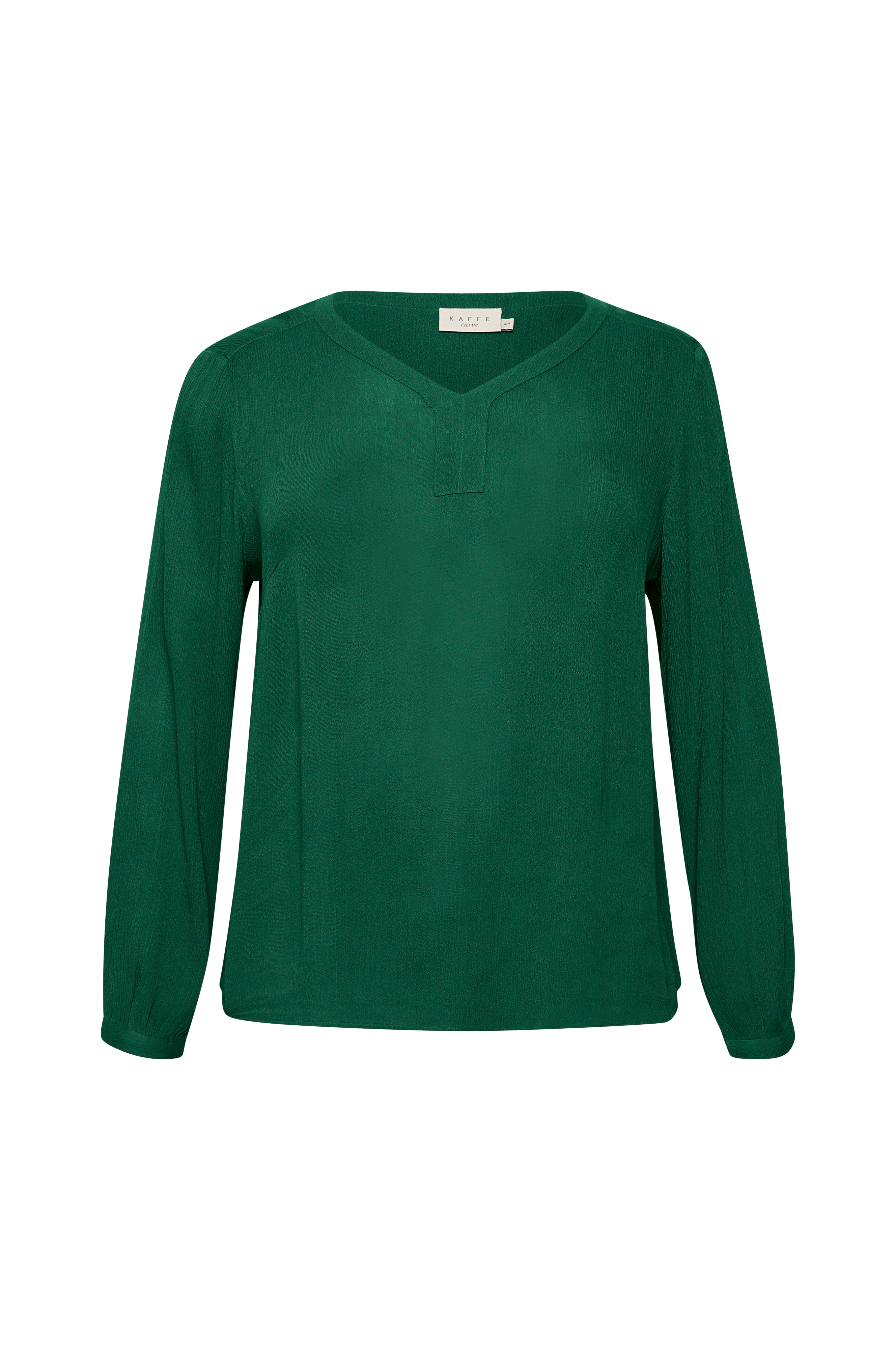 Bluse kCami LS Blouse fra Kaffe Curve i tynn, krinklet viskose. V-utringning foran og lange ermer med smal mansjett med knapp i ermekantene.