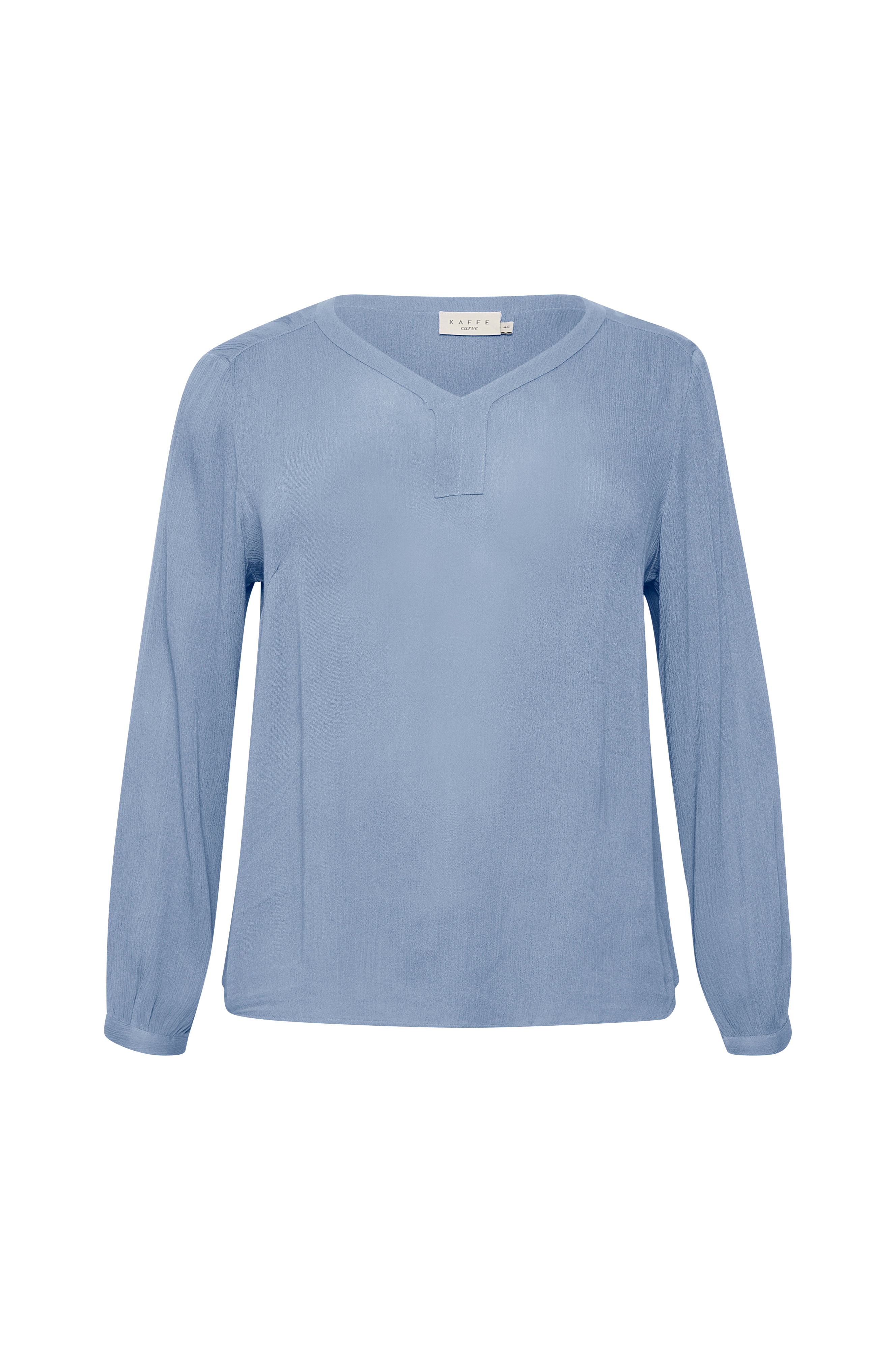 Bluse kCami LS Blouse fra Kaffe Curve i tynn, krinklet viskose. V-utringning foran og lange ermer med smal mansjett med knapp i ermekantene.