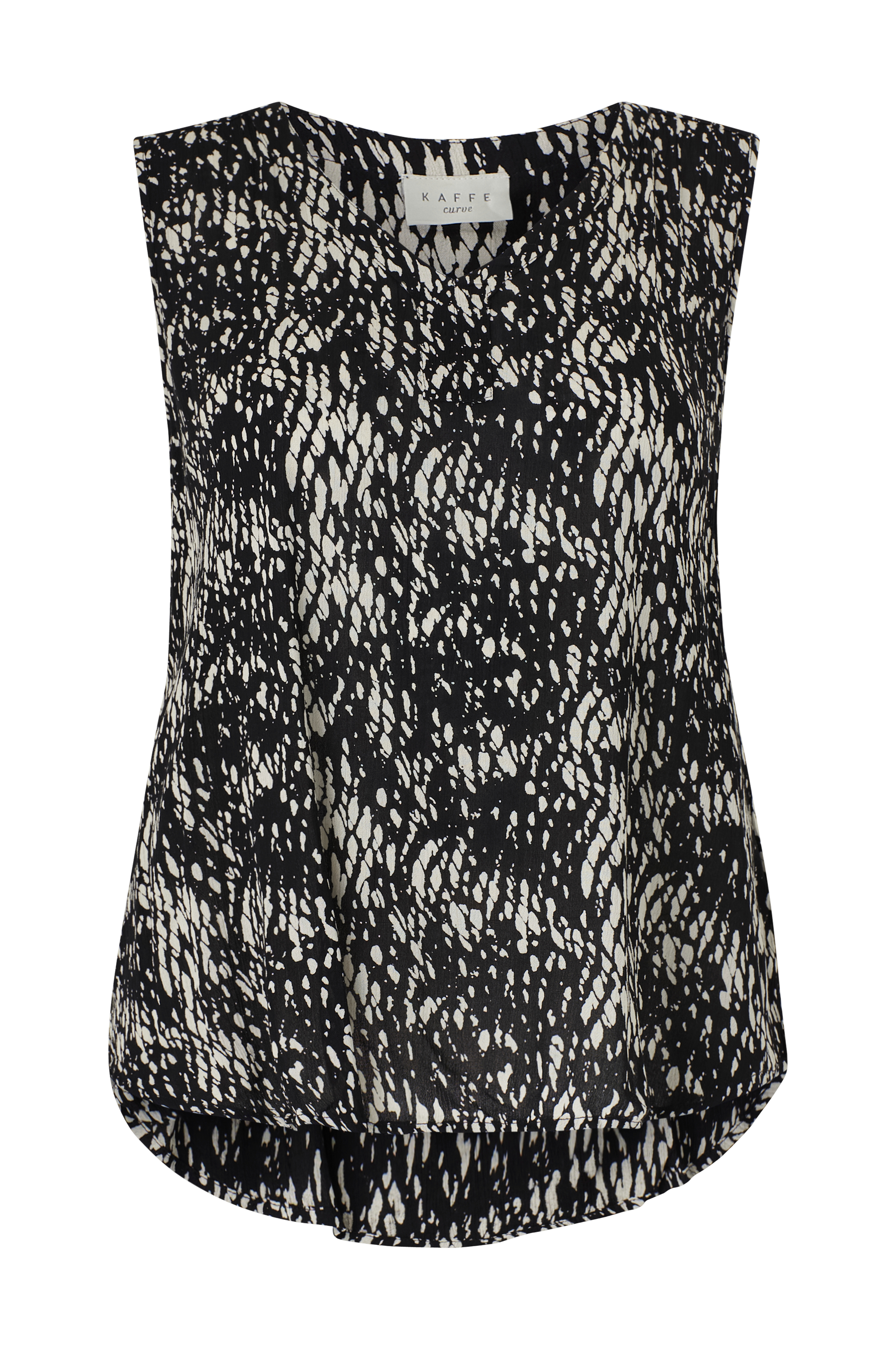 • Ermløs, mønstret bluse i viskose• V-hals snitt• Avrundet hem• Plusstørrelser
