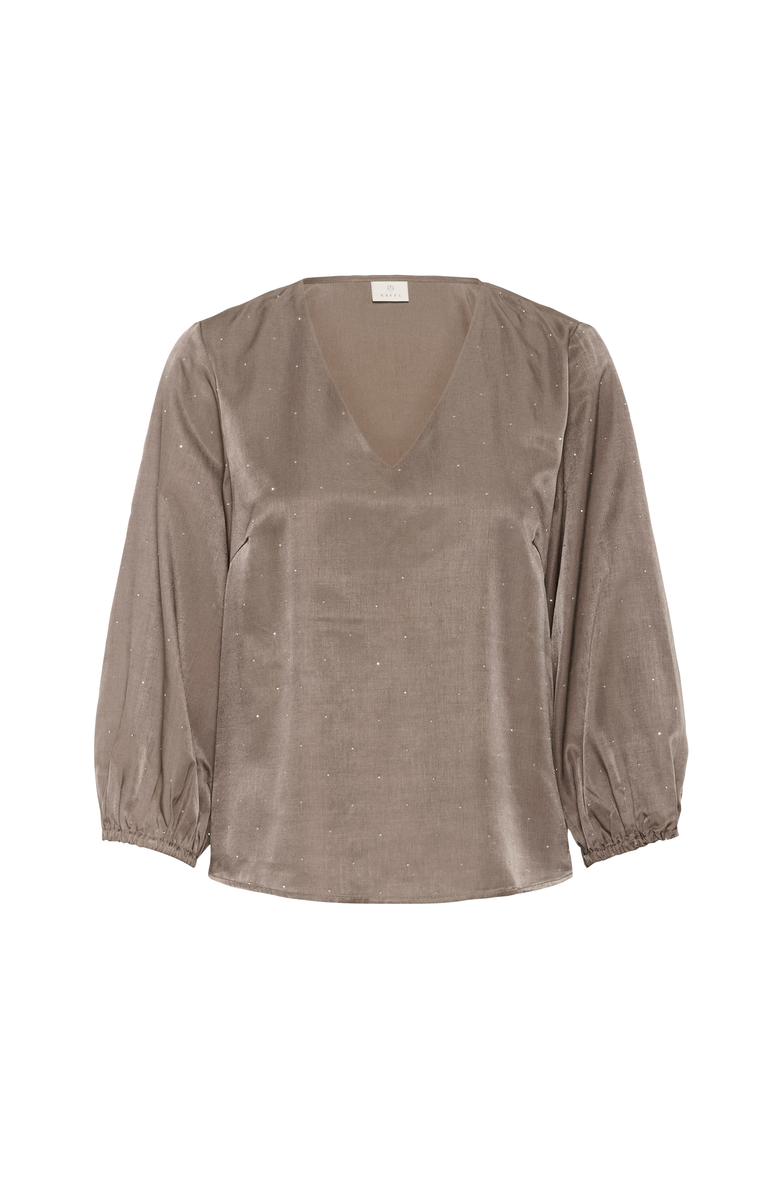 • Bluse med små, glitrende rhinstener rundt• V-formet hals• Ermer 3/4 lang med gummistrikk i ermeslutten