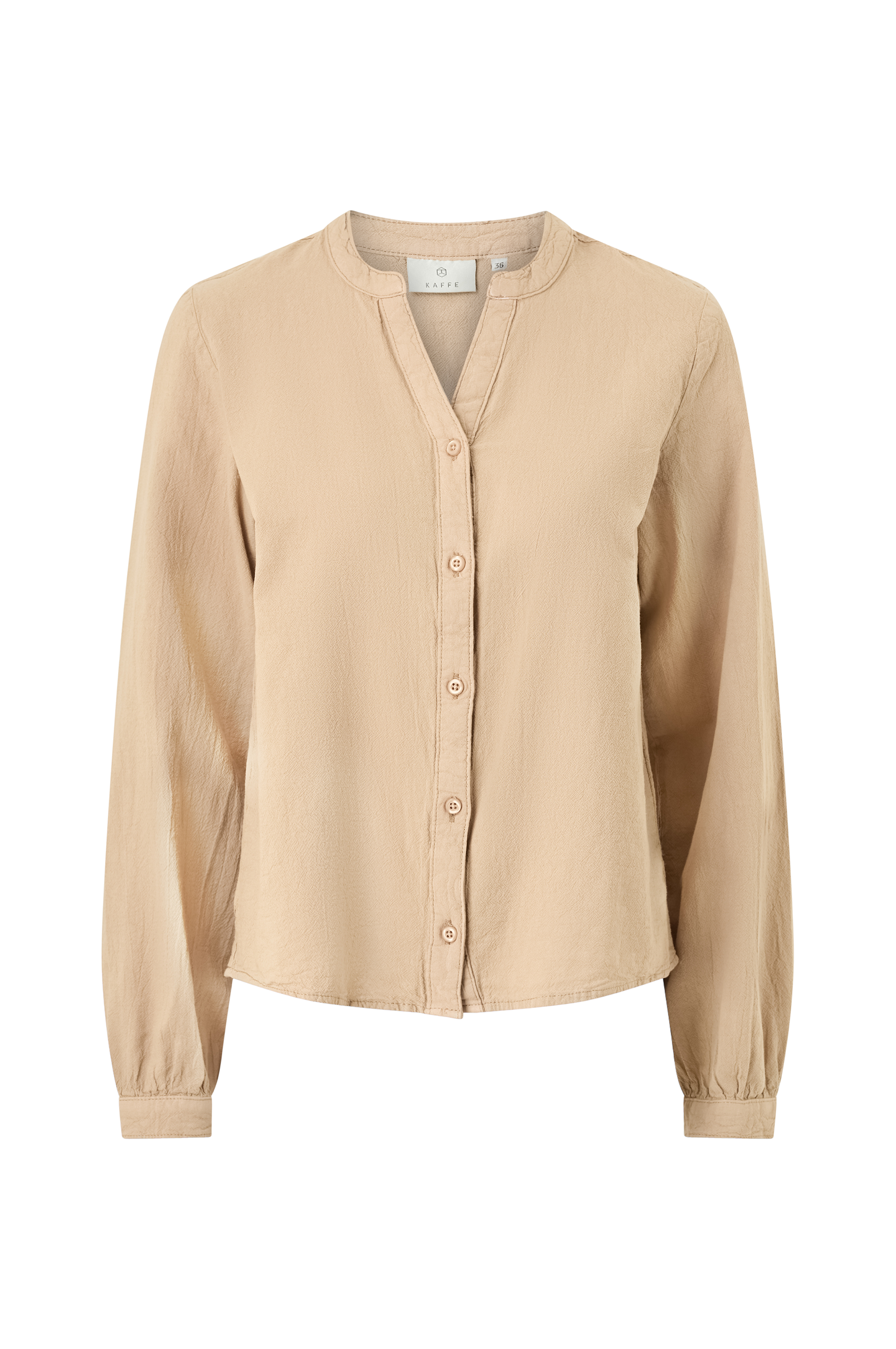 • Bluse i bomull• V-ringning• Lange ermer• Skjær med knapp i ermeslutten• Knappelukking