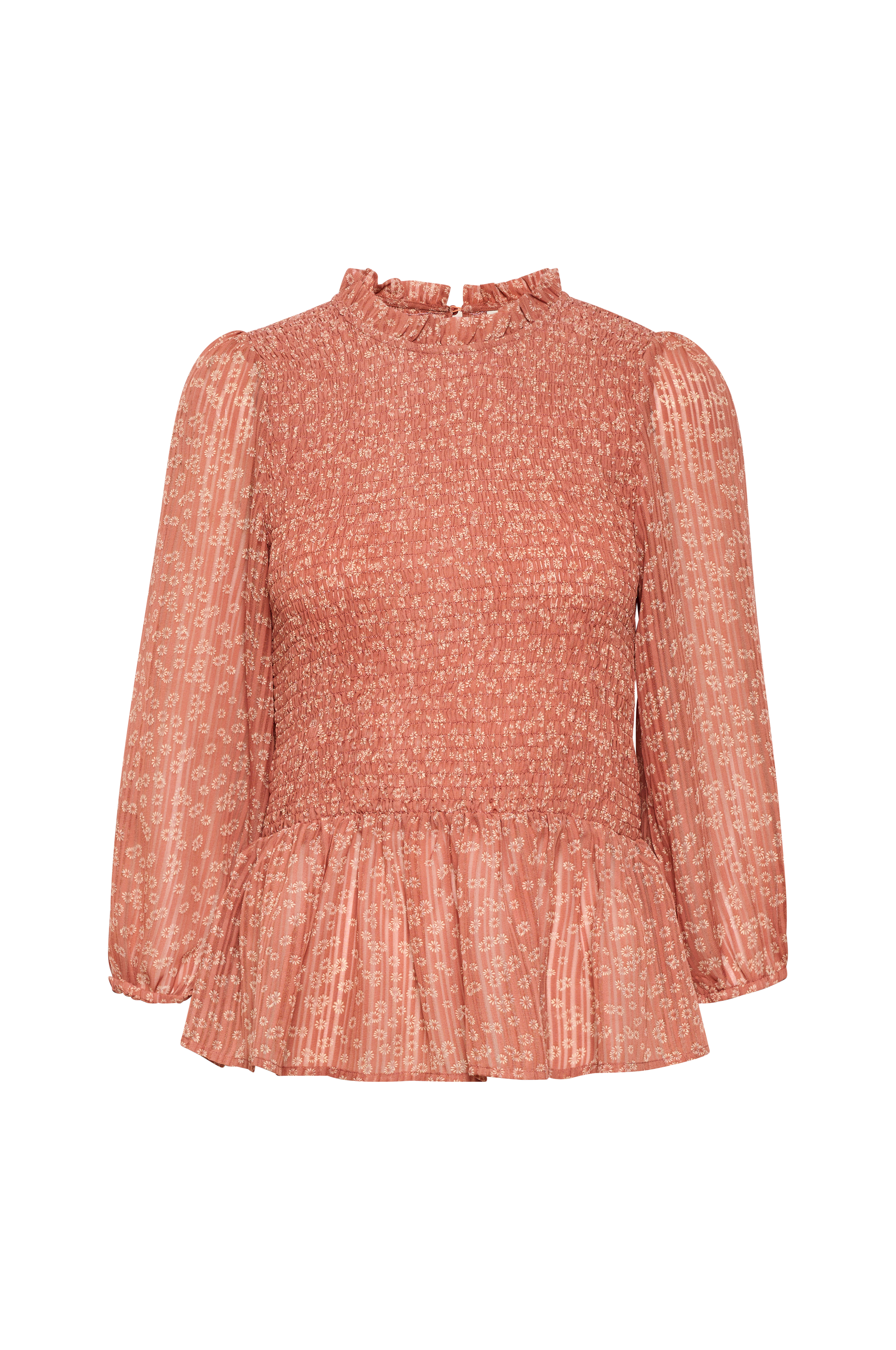 • Peplum-design• Øvre del med en vaffelsøm• Krympet hals• Ventilasjon med knapp i nakken• Bobleermer 3/4 lang med elastiske mansjetter• Tynn kvalitet