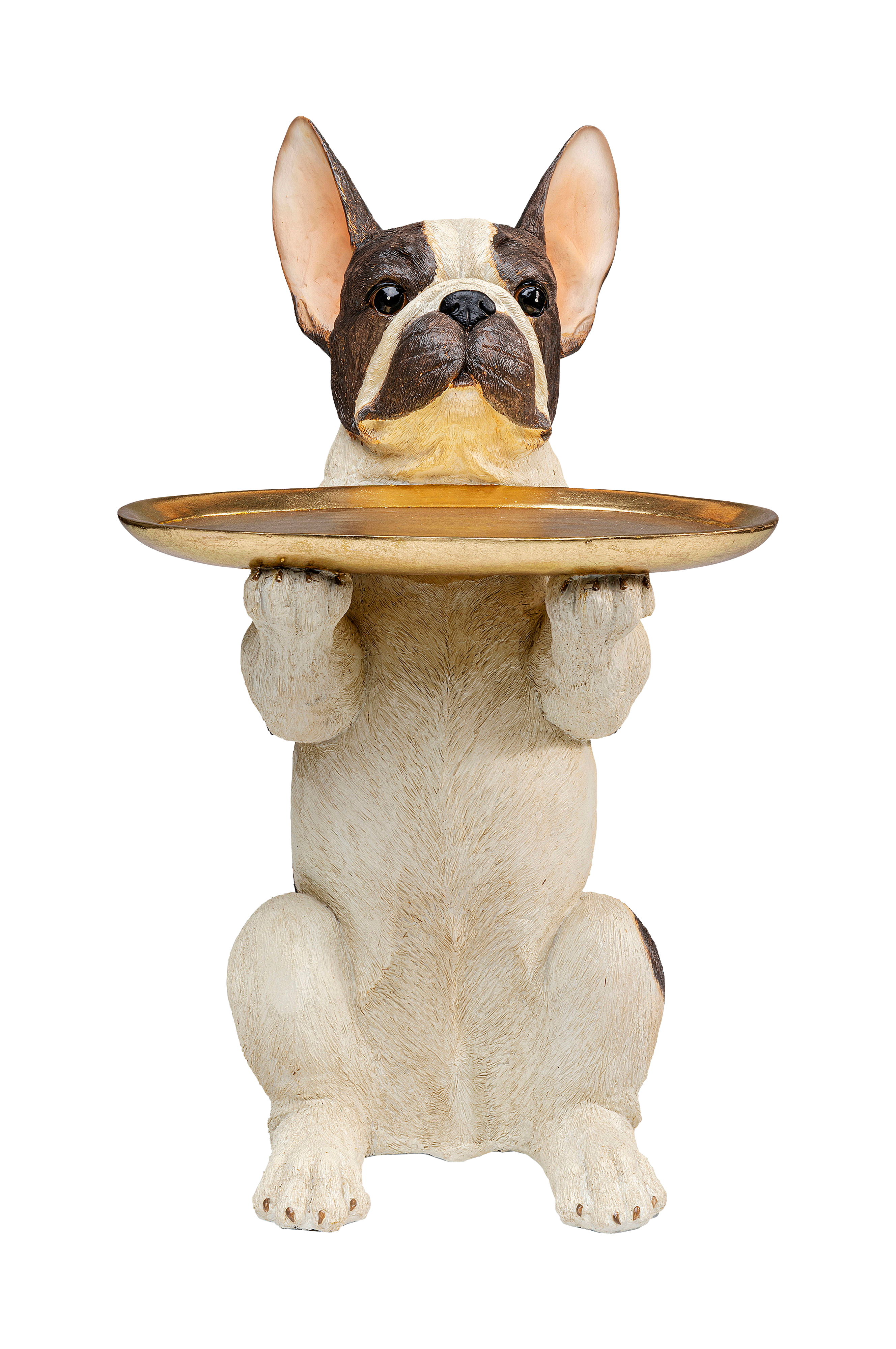 Skaff en personlig butler til ditt hjem. Han bidrar til å servere godteri. Du vil garantert ikke rote bort nøkler eller mobiltelefon når bulldoggen tar hånd om dem. Produsert av polyresin og metall.