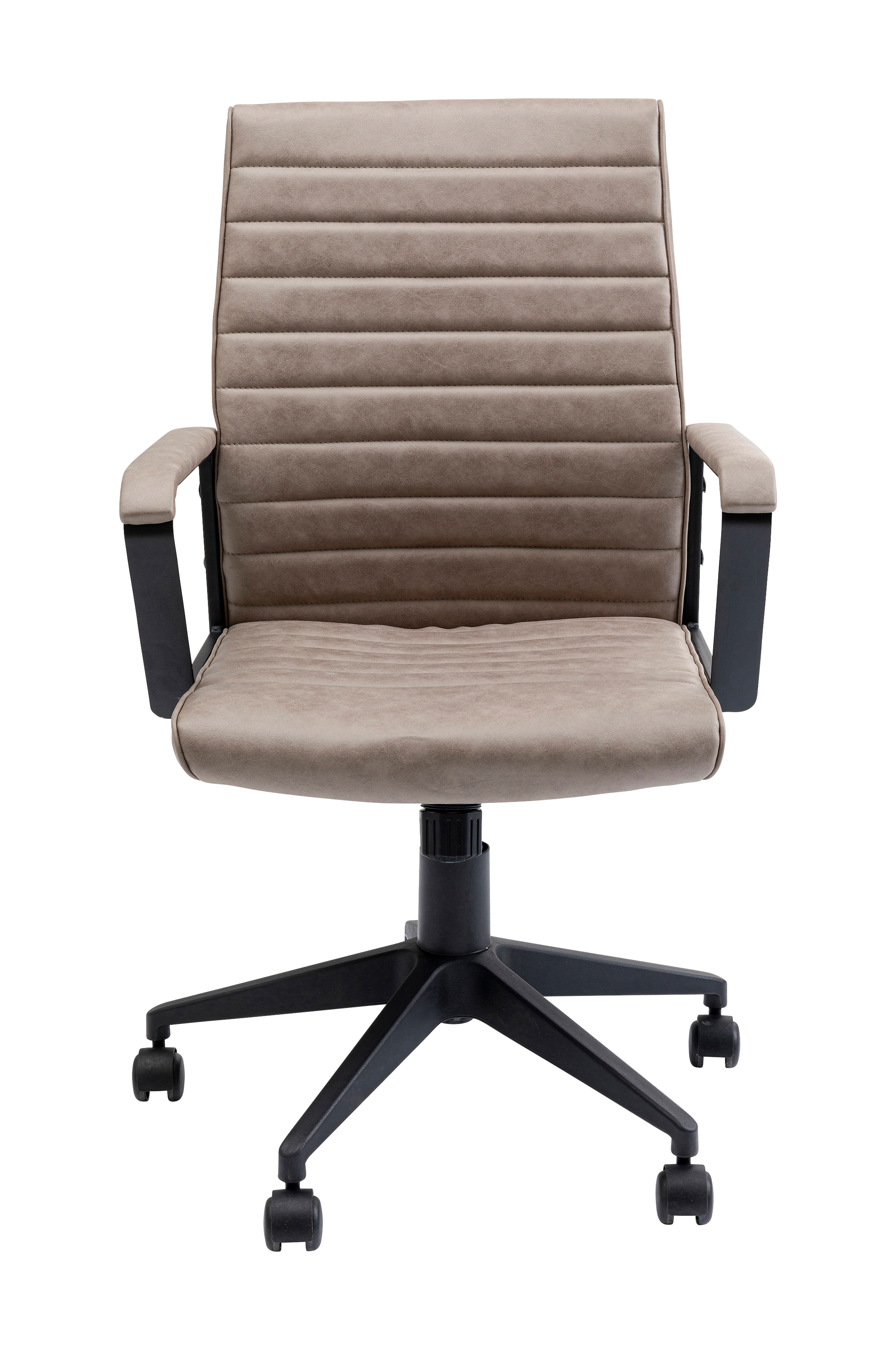 Snurr rundt! Kontorstolen Labora i beige farge med snurrefunksjon og stoppet sete imponerer med sine funksjoner: den roterer, kan helles og justeres i høyden. Dessuten har Labora ergonomisk ryggstø, tidløs vakker design og robust, skinnlignende trekk med vintagefølelse. Motstanden for ryggstøets hellemekanisme kan justeres individuelt for å passe din fysikk. Denne pene favoritten på kontoret ruller mykt på fem hjul av høy kvalitet. Denne kontorstolen gjør jobben så mye hyggeligere! Leveres umontert.