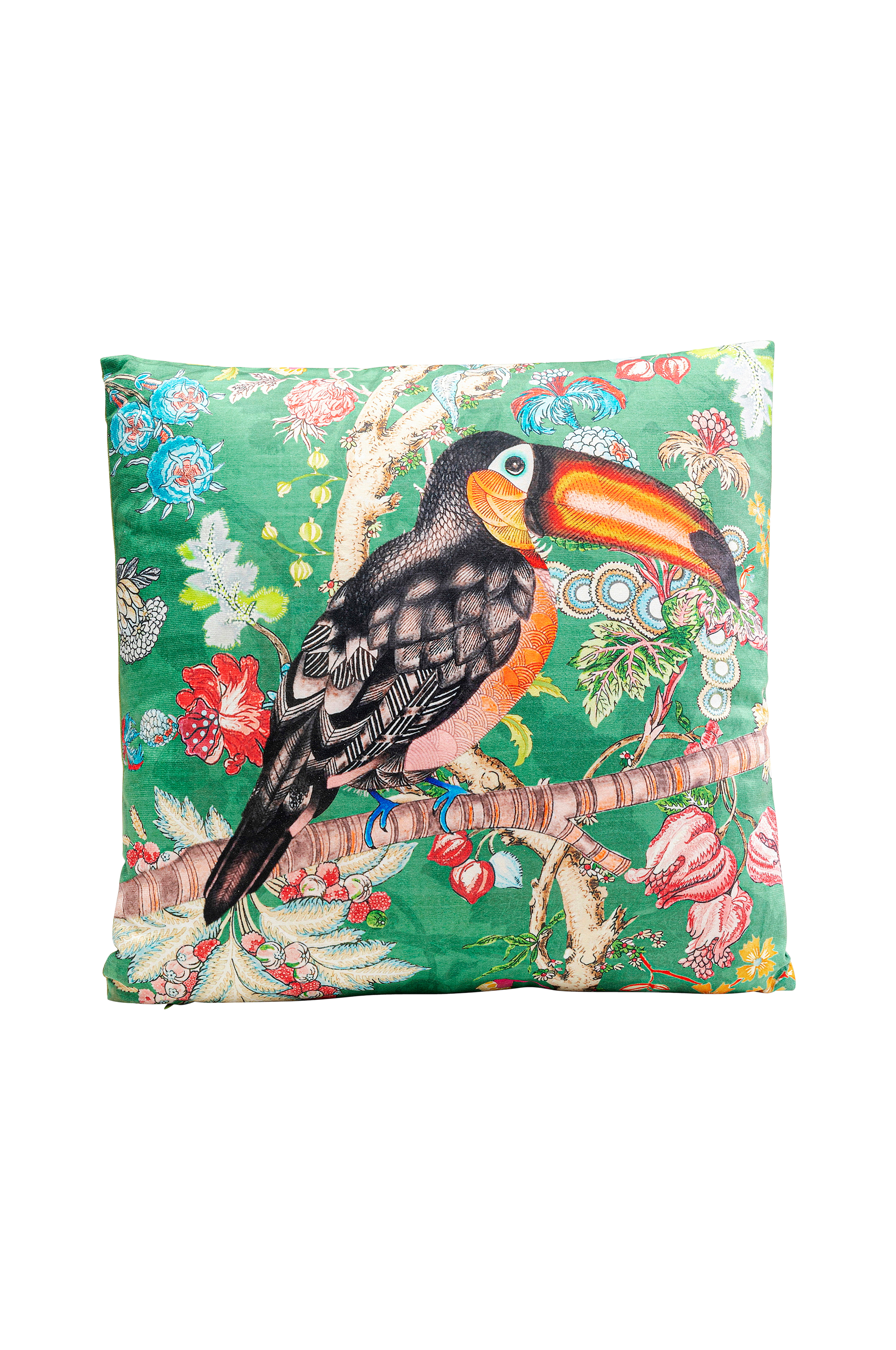 Gi hjemmet ditt et eksotisk preg med vår jungeltukanpute. Med sine livlige farger og unike tukan-design vil denne puten garantert bli et blikkfang i ethvert rom, enten det er i stuen, på soverommet eller på terrassen. Jungeltukan-puten kombinerer stil med funksjonalitet. Trekket i polyester av høy kvalitet er farge- og formbestandig, mens den tropiske grafikken gir en munter atmosfære til ethvert rom. Kombiner den med andre puter eller bruk den som en frittstående aksent - mulighetene er uendelige!
