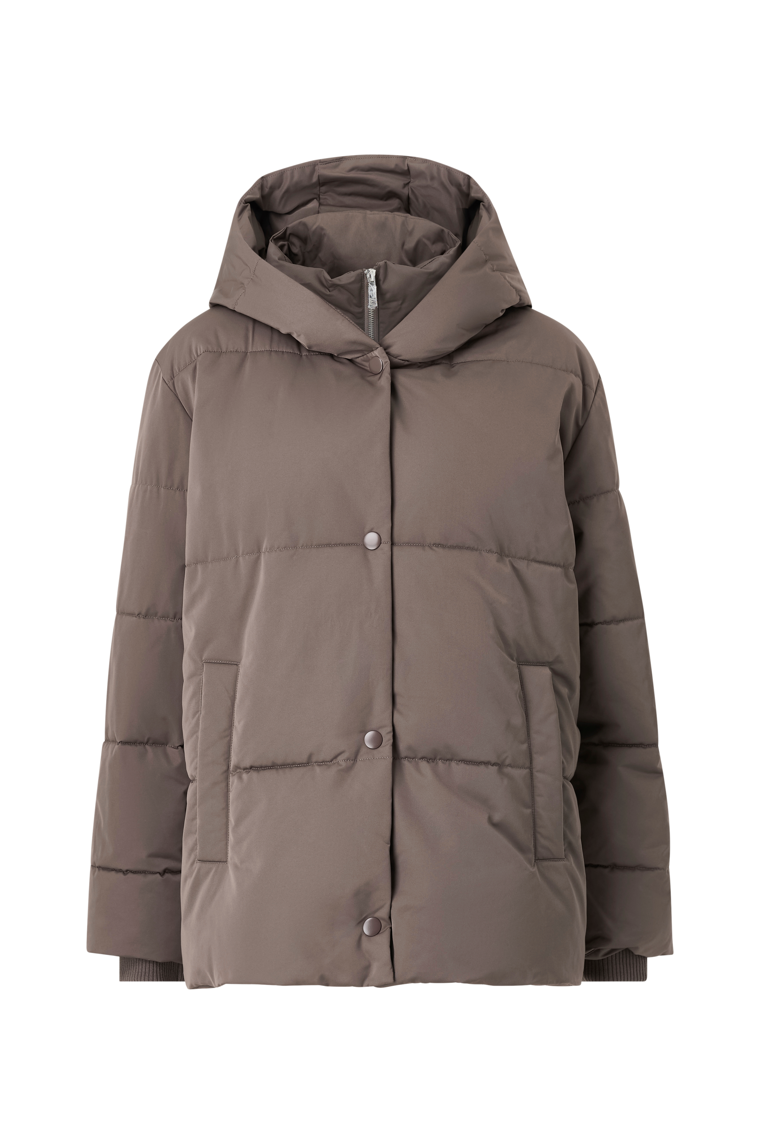 • Vattert, polstre jakke• Fast hette• Ribbet mansjetter• Lukker med glidelås og knapper• Tekstilfôr• Sidelommer• Avslappet passform• Lengde: 77 cm i størrelse 36