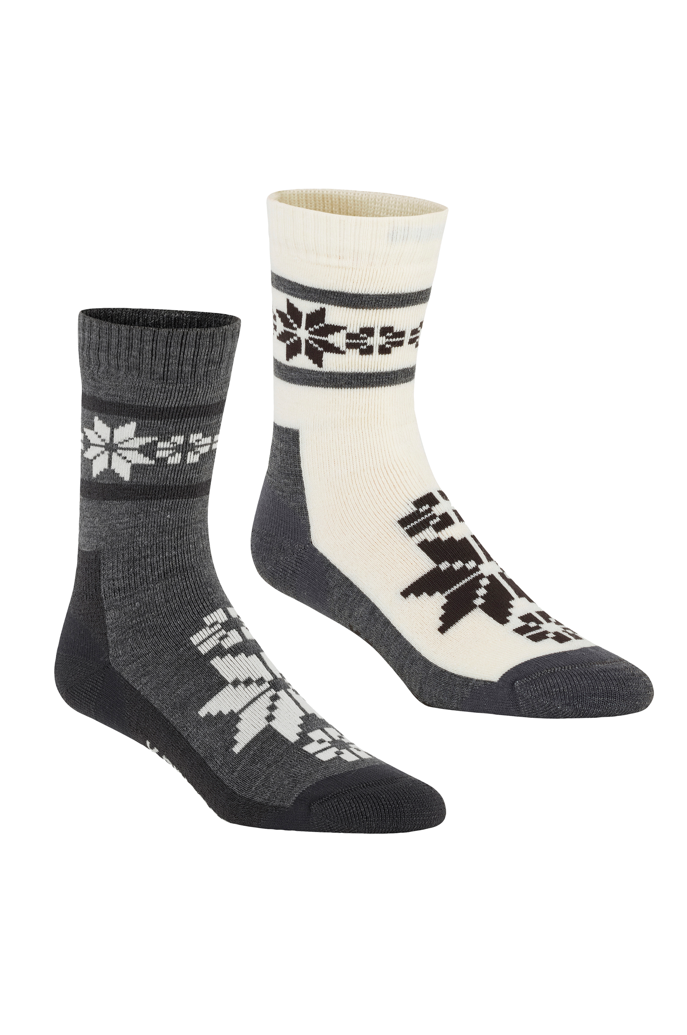 To par varme sportssokker i en varmende ullblanding. Forsterket hæl og tå. Sømløs tå som reduserer risikoen for gnagsår. Ribbestrikket kant på skaftet.