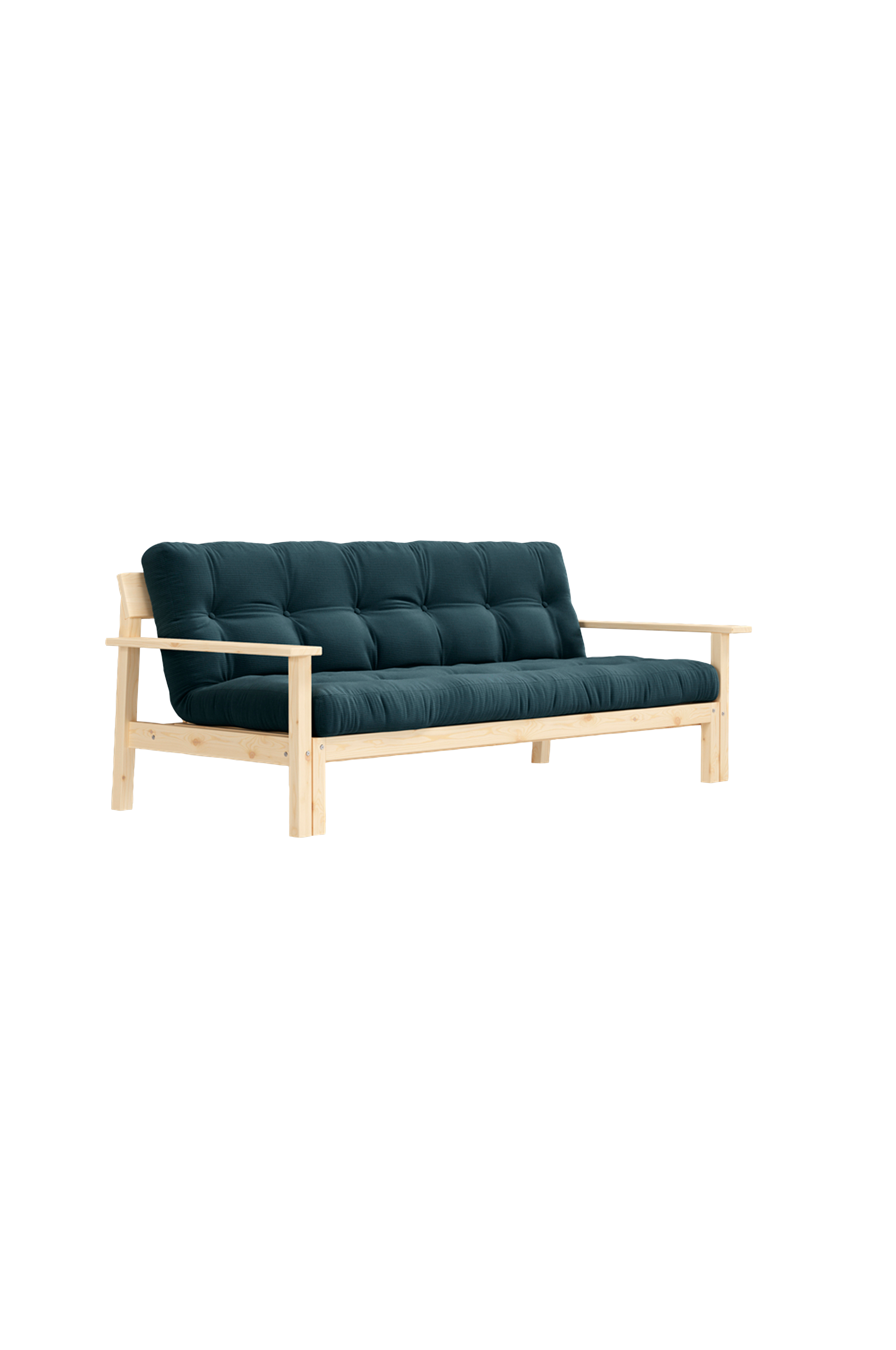 Navnet sier alt: dette er den perfekte sofaen for avslapping. Med en enkel bevegelse forvandles den fra en elegant, 1950-tallsinspirert sofa av furu til en filmkveldssofa som bare venter på at du skal slå deg ned, lene deg tilbake og slappe av. Det brede armlenet fungerer som et lite, innebygd sidebord, og gjør at du har alt du trenger innen rekkevidde.