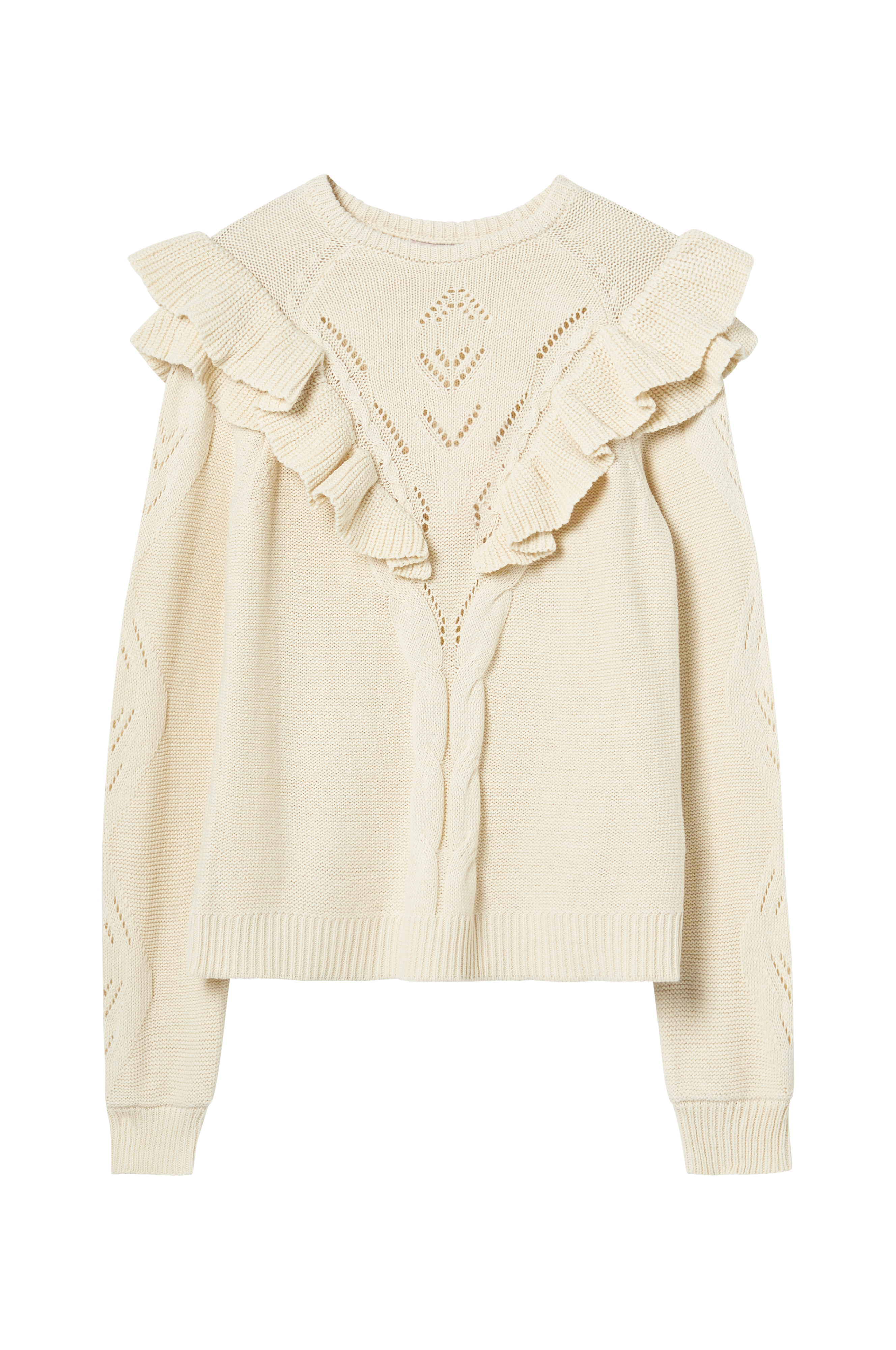 • Strikket volanger over skuldrene