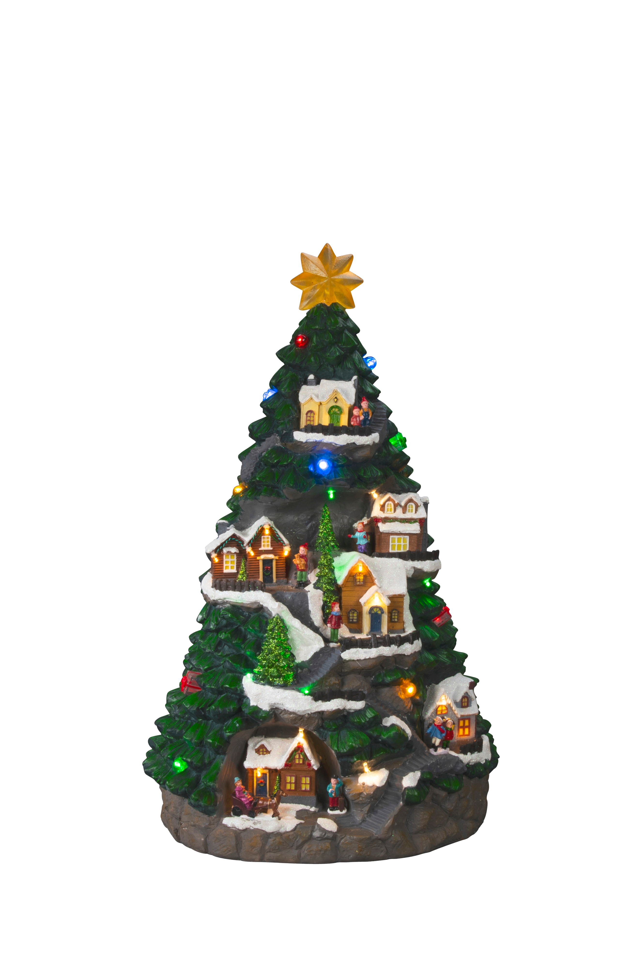 Med denne juledekorasjonen i form av et tre prydet med sjarmerende små hus og musikk, kan du enkelt skape en festlig atmosfære i rommet. Treet er 39 cm bredt og 61 cm høyt, med 38 flerfargede led-lys og en 6-timers timer.