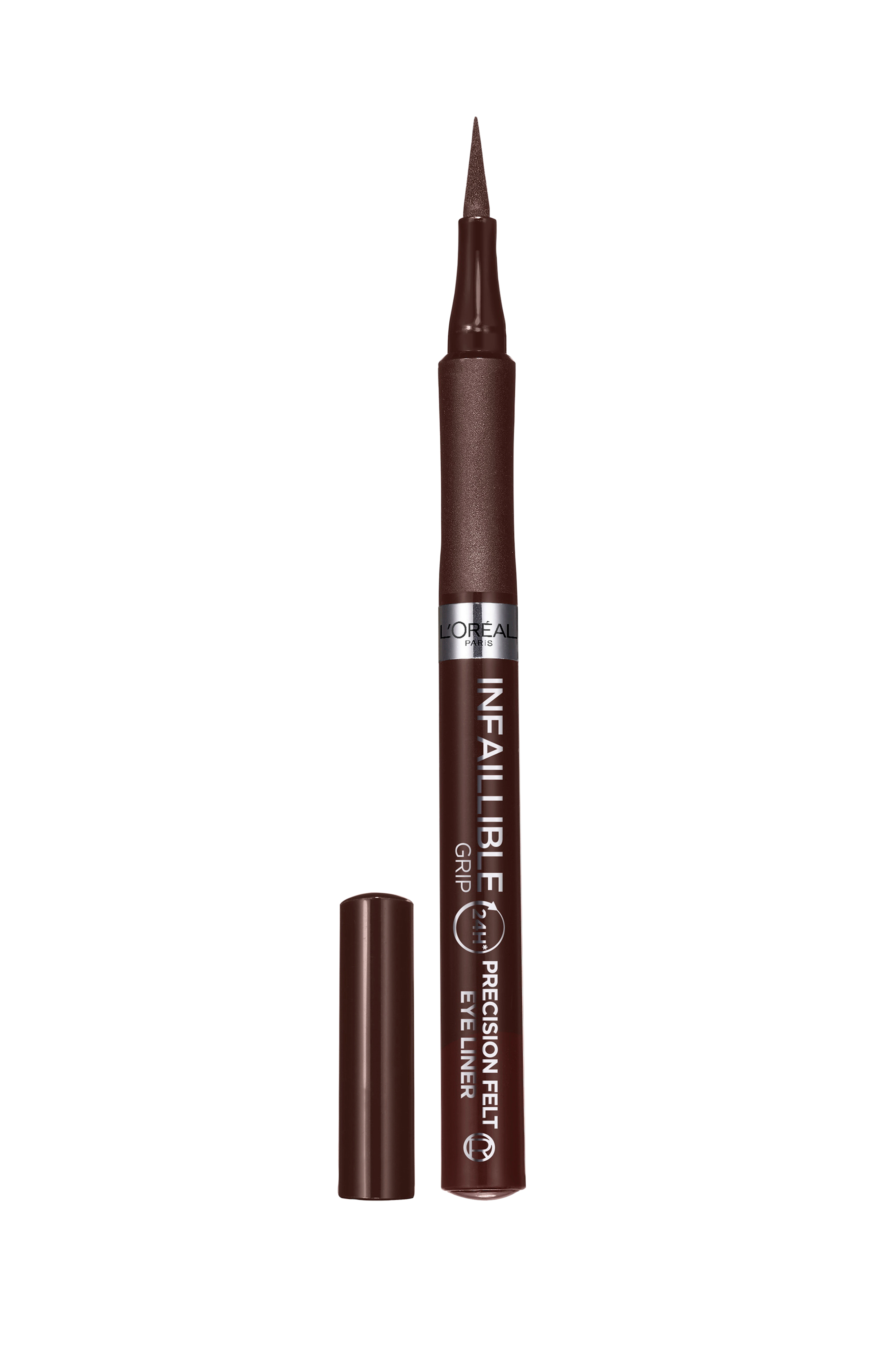 Infaillible bold lines all day, every day! L'Oréal Paris Infaillible Grip 24H Precision Felt eyeliner har en 0,4 mm* tynn filttupp for presise linjer med opptil 24 timers** hold. Vannfast formel - smitter ikke av. Godt grep nær tuppen gir deg stødig kontroll og gjør det enkelt å påføre eyelineren.