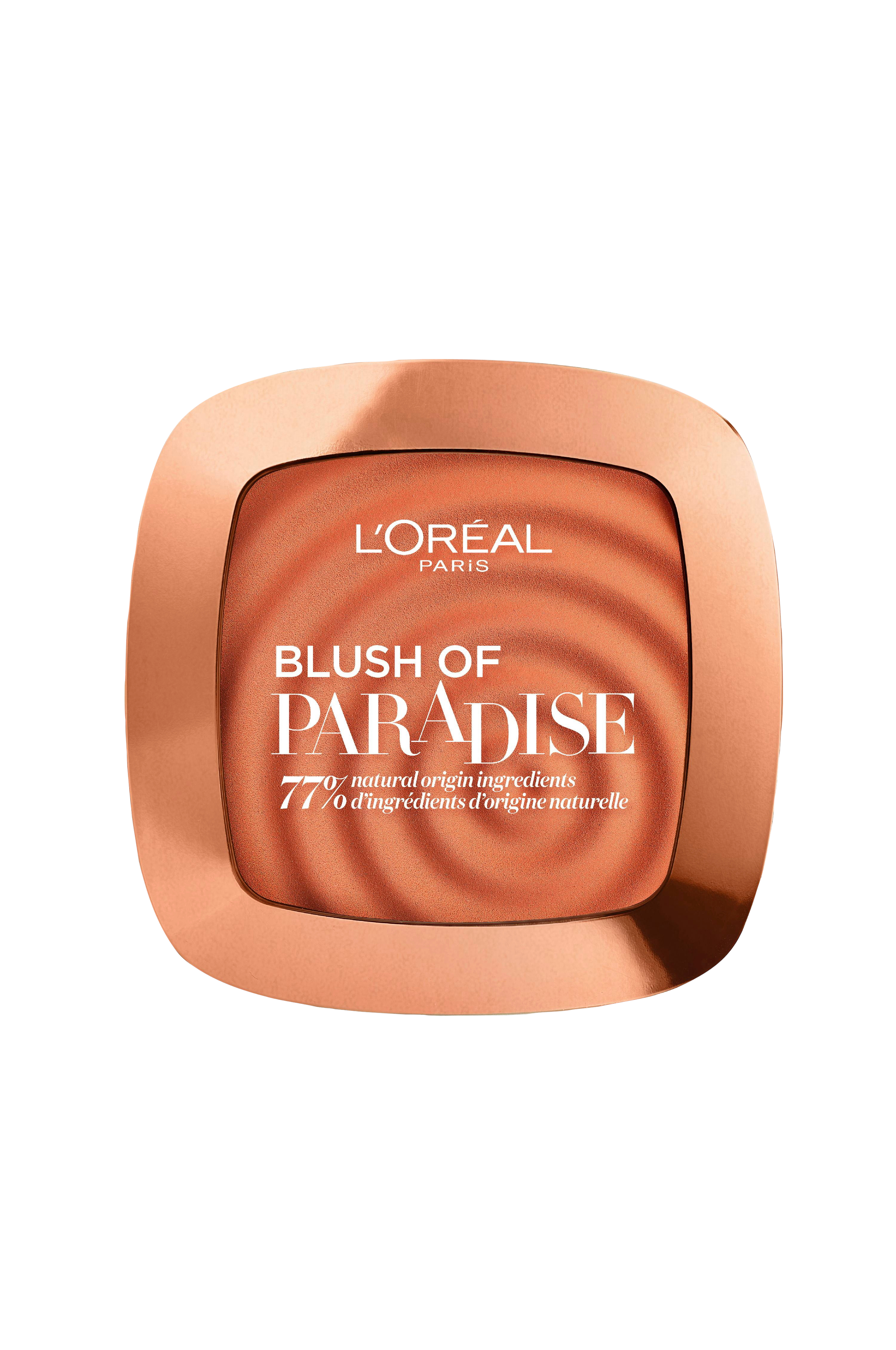 Blush som gir deg en strålende glans. Universal fargenyanse som matcher alle hudtoner. 77% av ingrediensene er av naturlig opprinnelse. Beriket med ferskenekstrakt. 9g