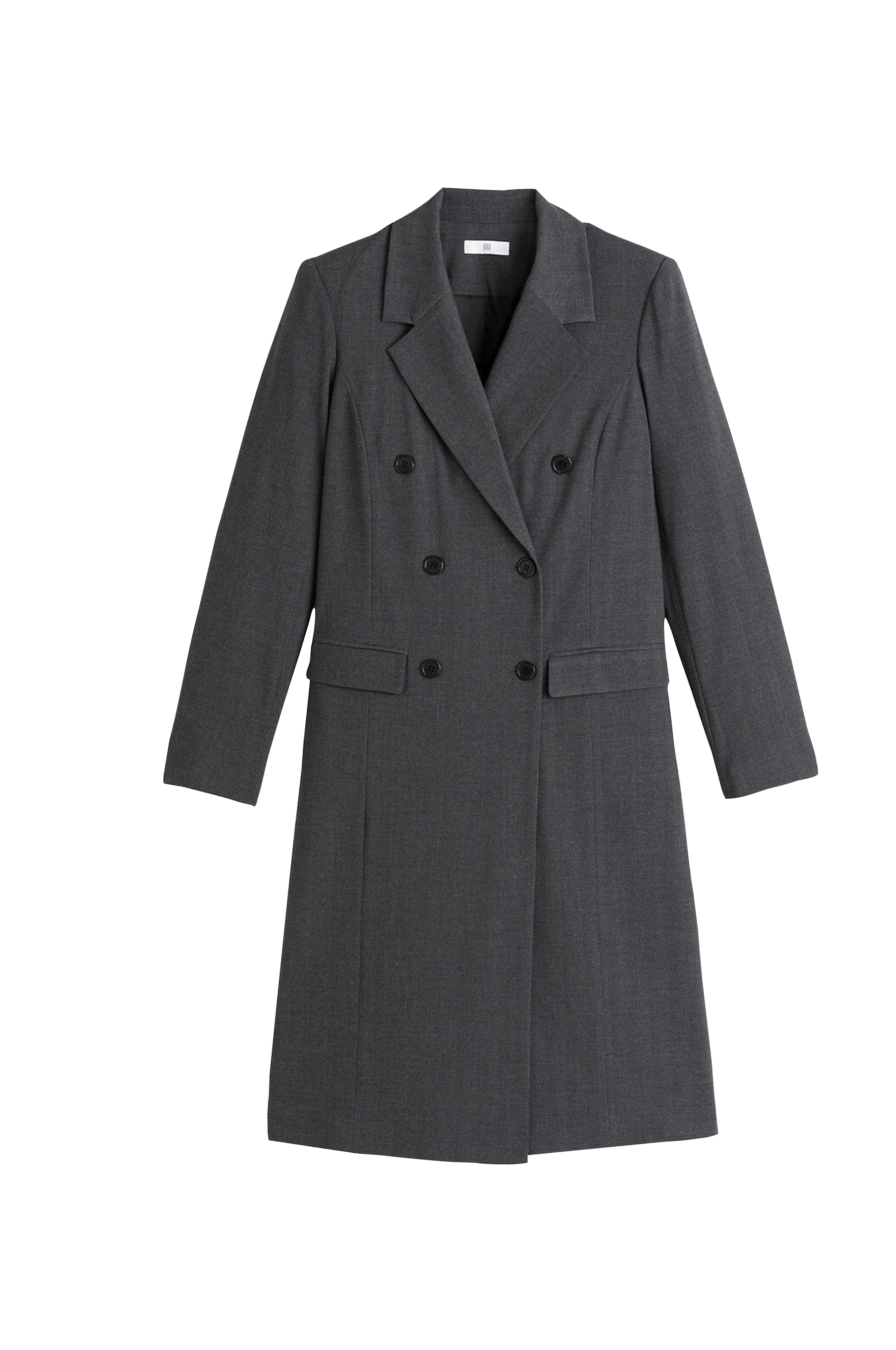 Dobbeltspent kåpe i smidig materiale. Trendy, herreinspirert modell.