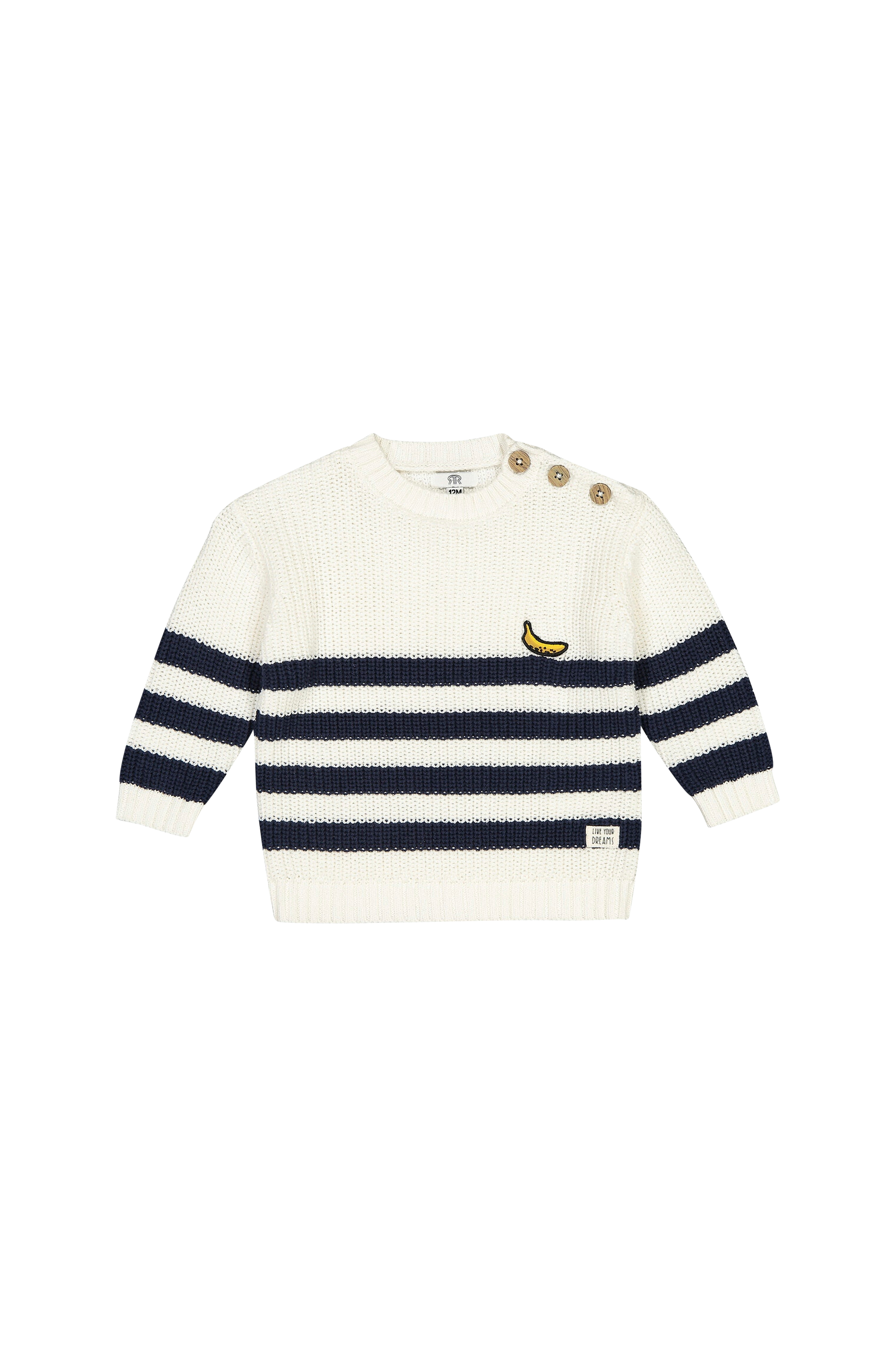 Detaljer - Lange ermer - Rund hals - Grovstrikket materiale - Stripete mønster Materialer og vedlikeholdsråd - 100% bomull - Finvask 30° - Tåler ikke stryking / tåler ikke blekemiddel - Tåler ikke tørketromling - Tåler ikke rens Mer informasjon - Knapper på den ene skulderen - Brodert bananmerke på brystet - Vrangborder