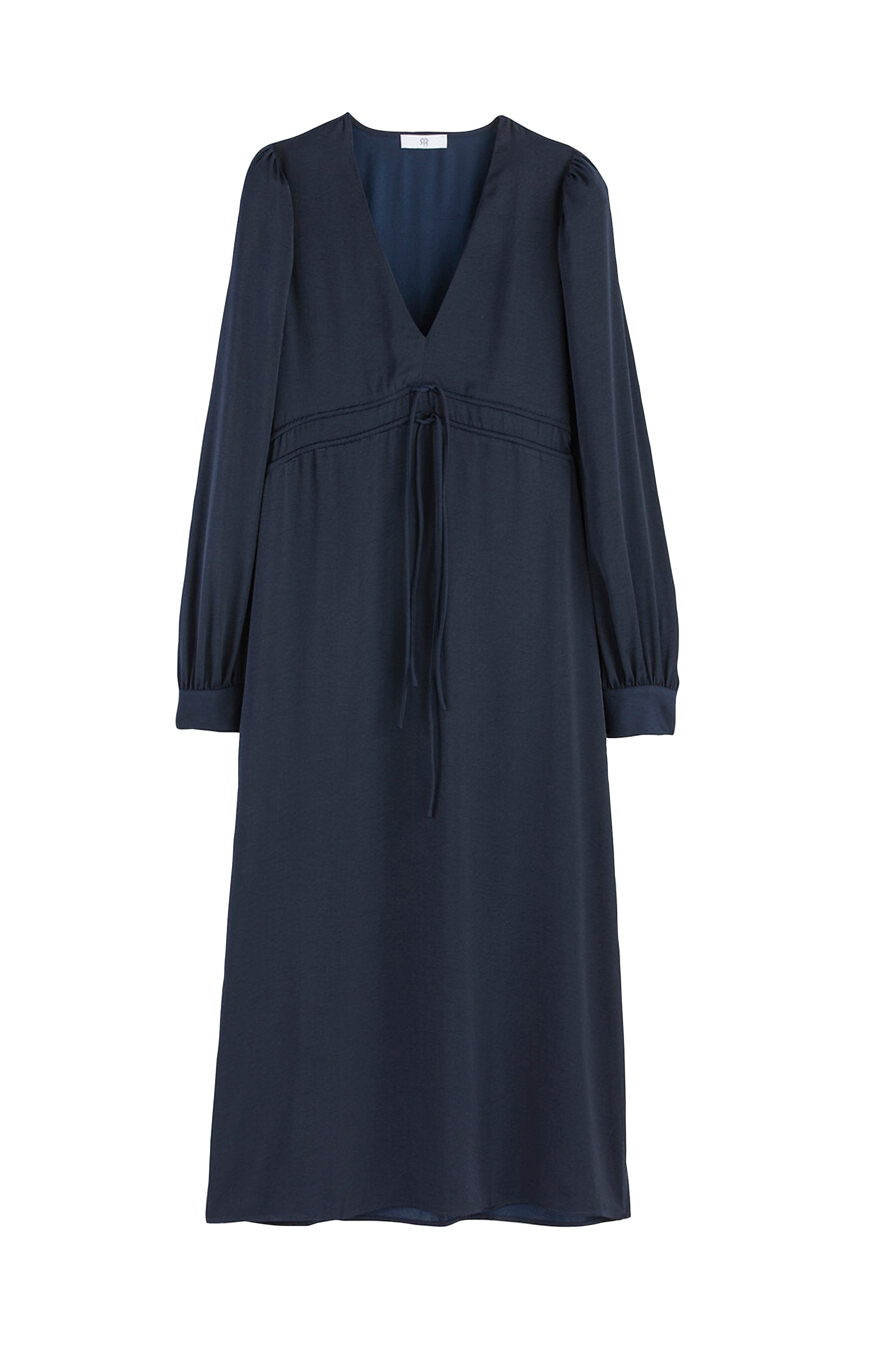 Lang kjole i elegant stil. Flatterende V-utringning og utsvingt passform. Feminin modell med snøring og knytebånd som markerer midjen. Detaljer - Utsvingt modell - Lang modell - Lange ermer - V-utringning - Snøring med knytebånd i midjen - Splitt nederst i sidene Produktets mål i størrelse 38/M - Lengde: 128 cm - Ermelengde: 68 cm