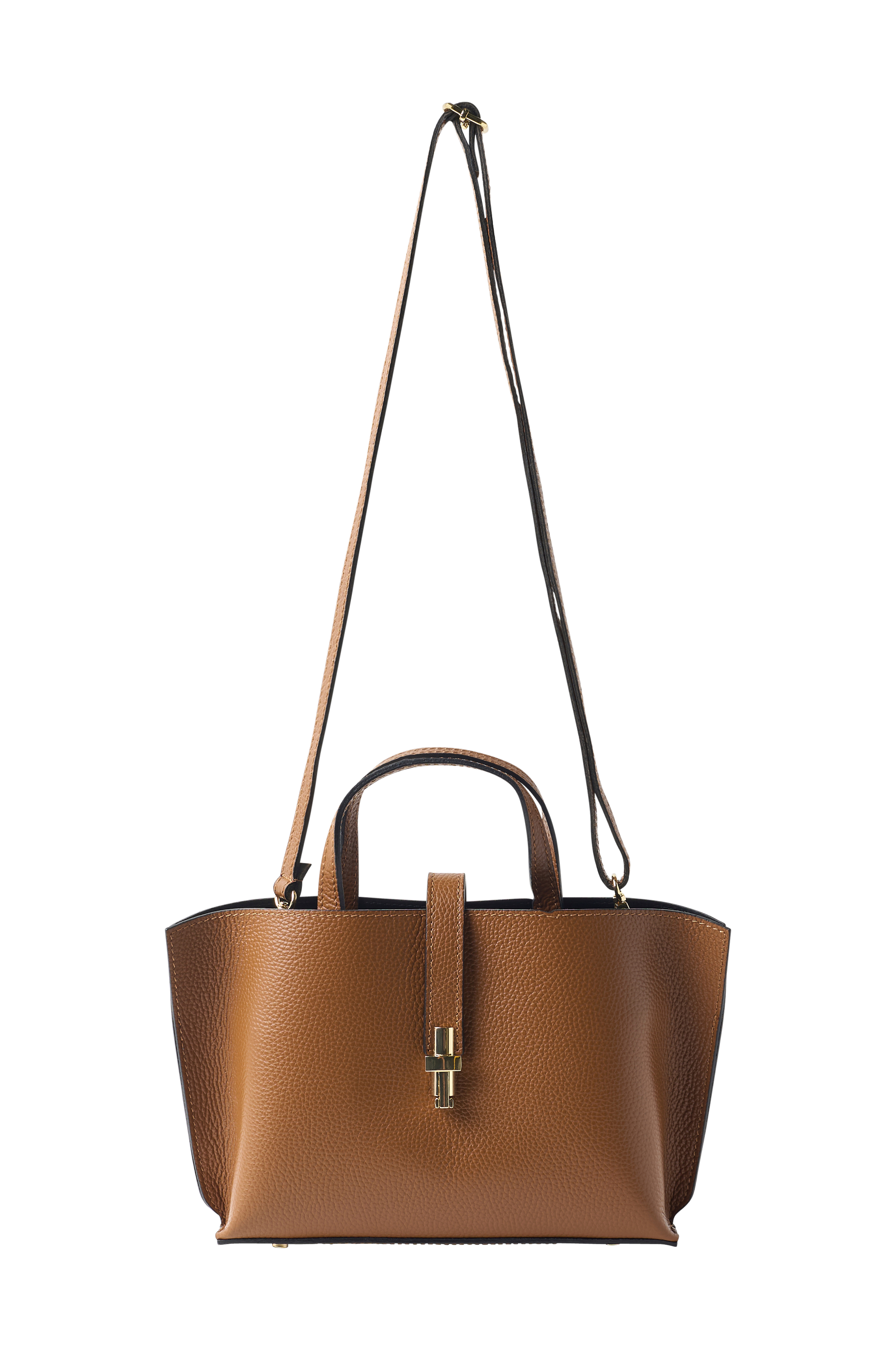 • Vesken i skinn• Bærehåndtak• Justerbar, avtagbar skulderstropp• Metallspenne• En innvendig vesken med glidelåslukking, en glidelåsrom og tekstilfôr• Foring i PU