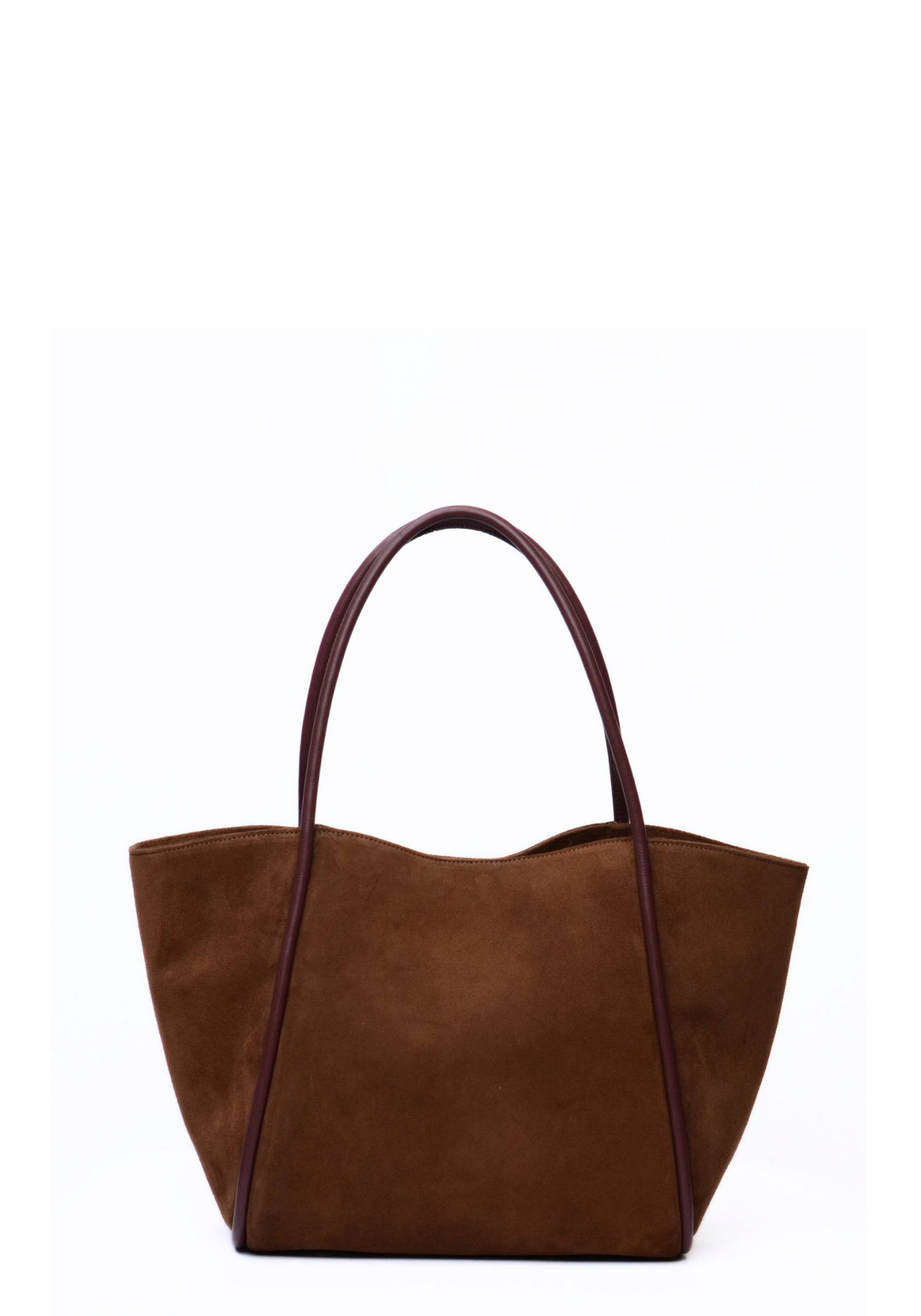 • Vesken i semsket skinn• Justerbar, avtagbar skulderstropp• Bærehåndtak• En innvendig, uttagbar vesken• En åpen innerlomme• En innvendig glidelåsrom• Tekstilfôr• Størrelse: H52-32 × B18 × D33 cm
