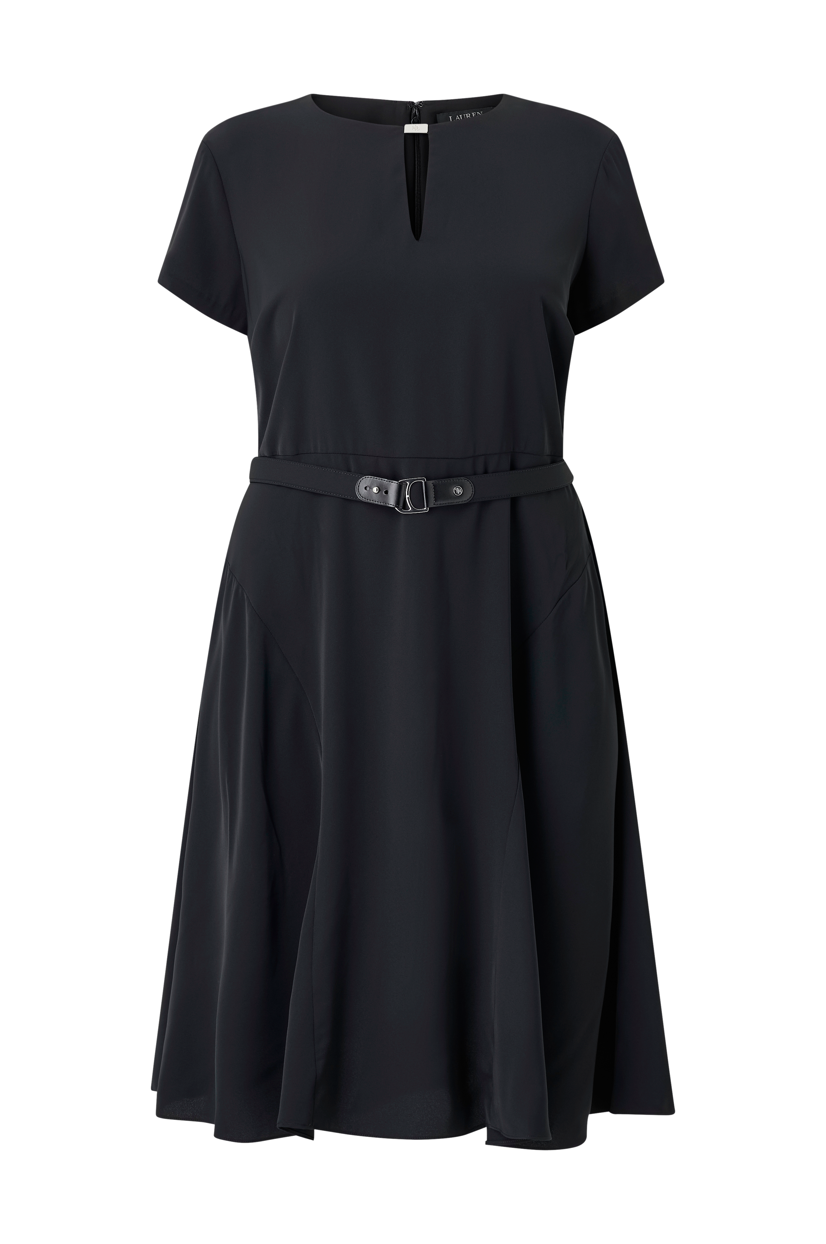 • Kjole med korte korte ermer og belte ved midjen• Rund hals med skjær og metallspenne• Utskjæring ved midjen• Fôr oppover foran• Glidelås i nakken• Pluss-størrelser• Lengde: 113 cm i størrelse 14W
