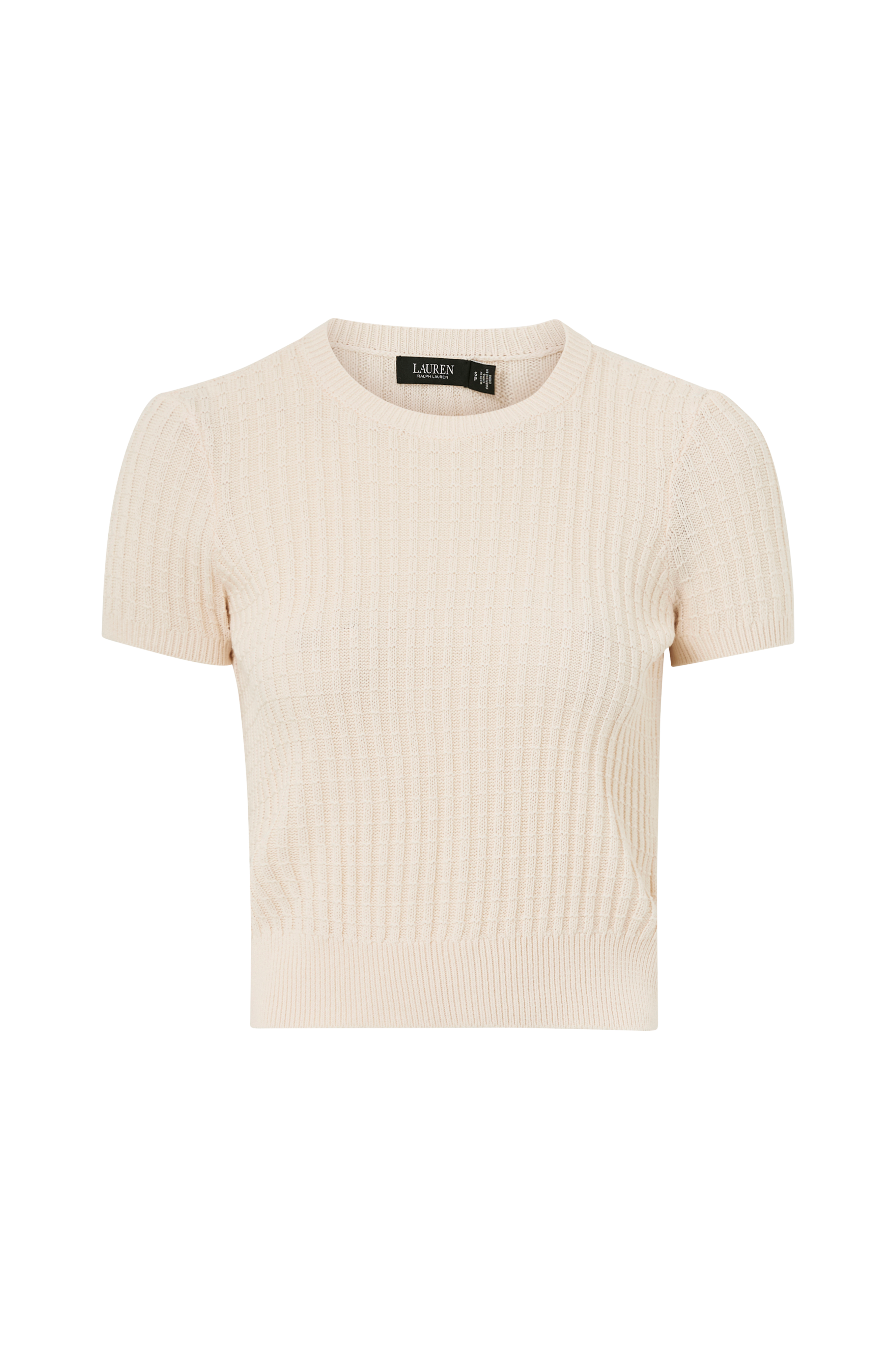 • Strikket genser med et strukturmønster• Kort erme• Rund, ribbet hals• Ribbet hem