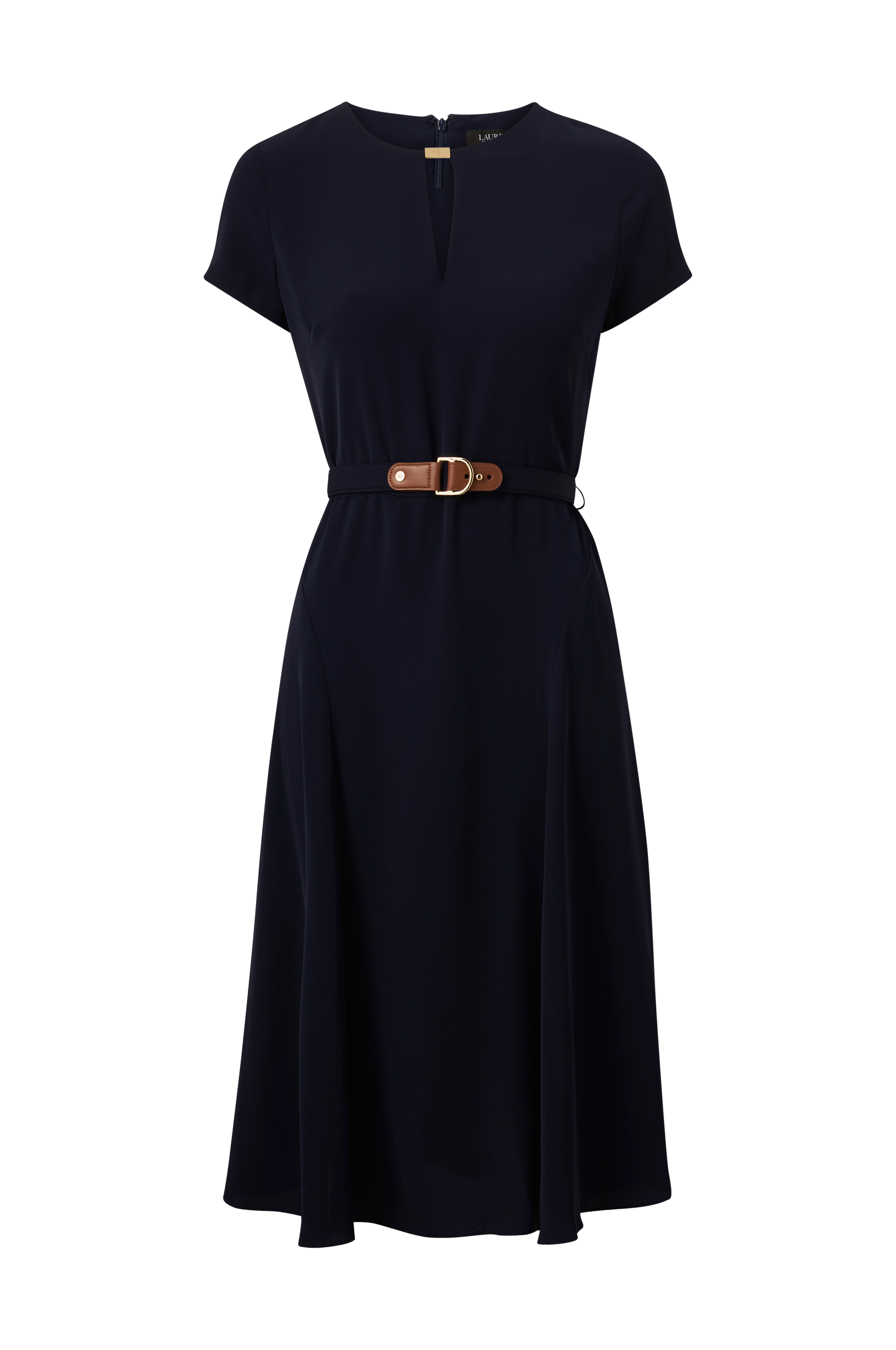 • Lett skinnende materiale • Rund hals med gullfarget detalj i metall foran • Glidelås i nakken • Kort erme • Belte med metallspenne • Lengde: 110 cm i størrelse 36 • Produktet inneholder gjenvunnet materiale som er brukt for å redusere mengden avfall, samtidig som det ikke er brukt nye ressurser.