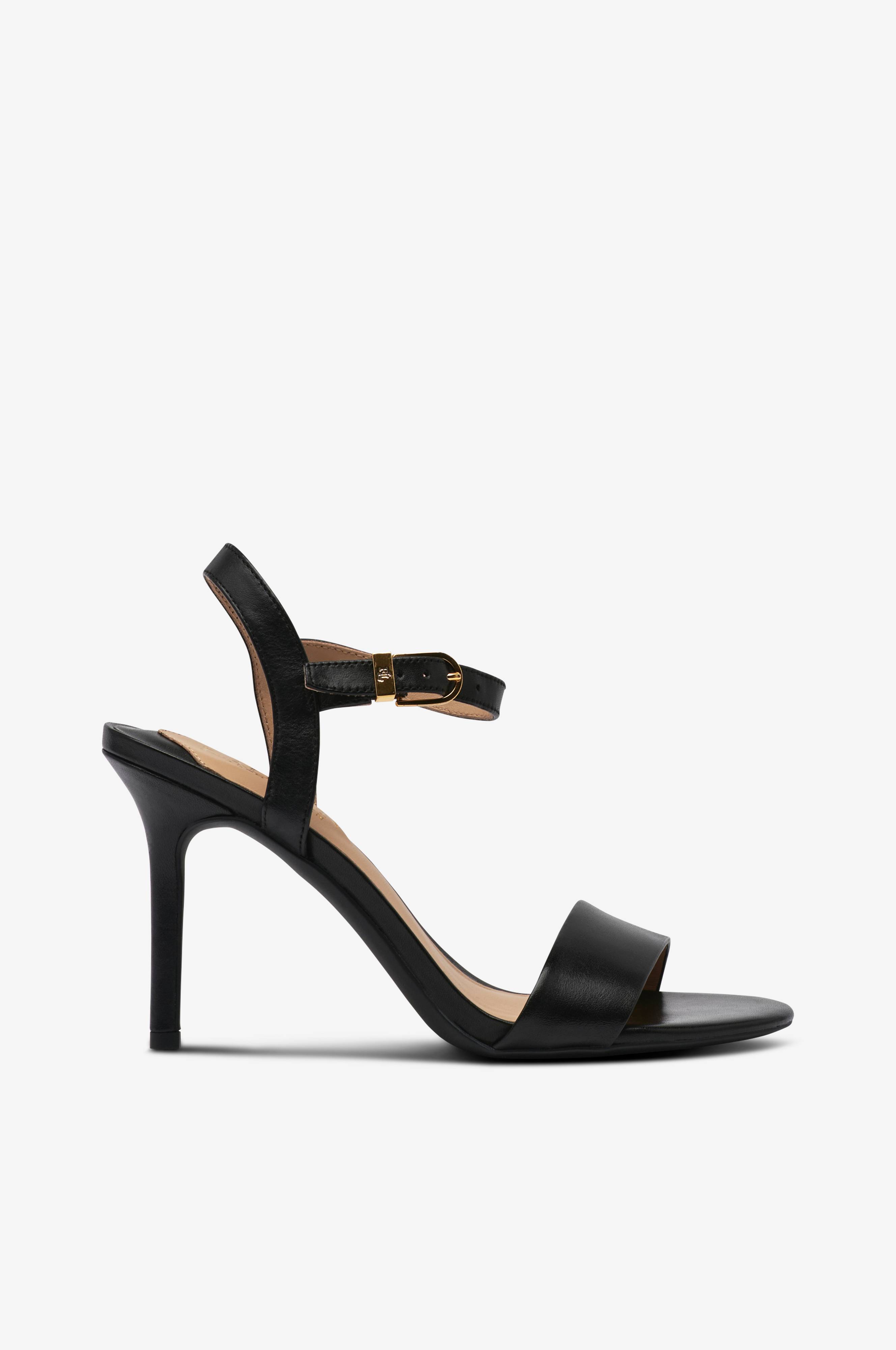 • Sandaletter i skinn• Ankel-reimen med metallspenne• Stropp over foten• Tynn, kledd kilehæl• Myk fotseng i skinn• Hælhøyde: 7 cm