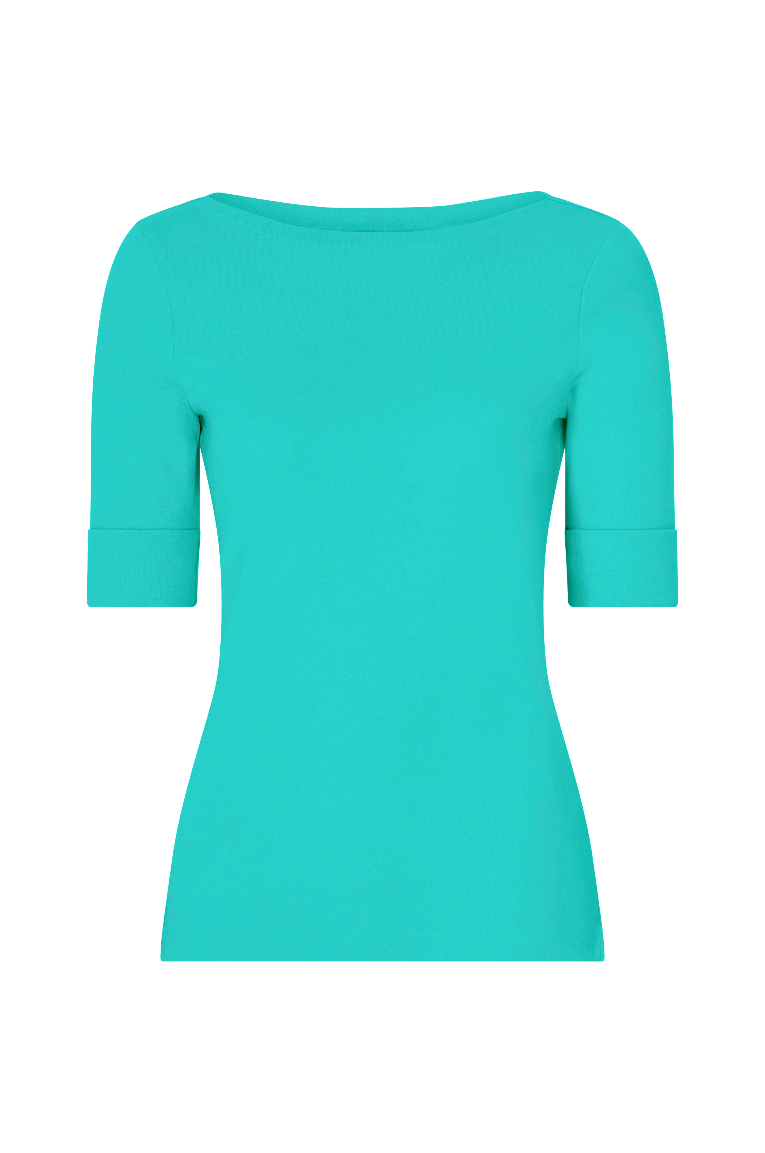 Topp Judy Elbow Sleeve Knit fra Lauren Ralph Lauren i myk bomullstrikot. Lett figurformet modell med halvlange ermer med bred oppbrett. Vid båthals og splitt nederst i sidene.