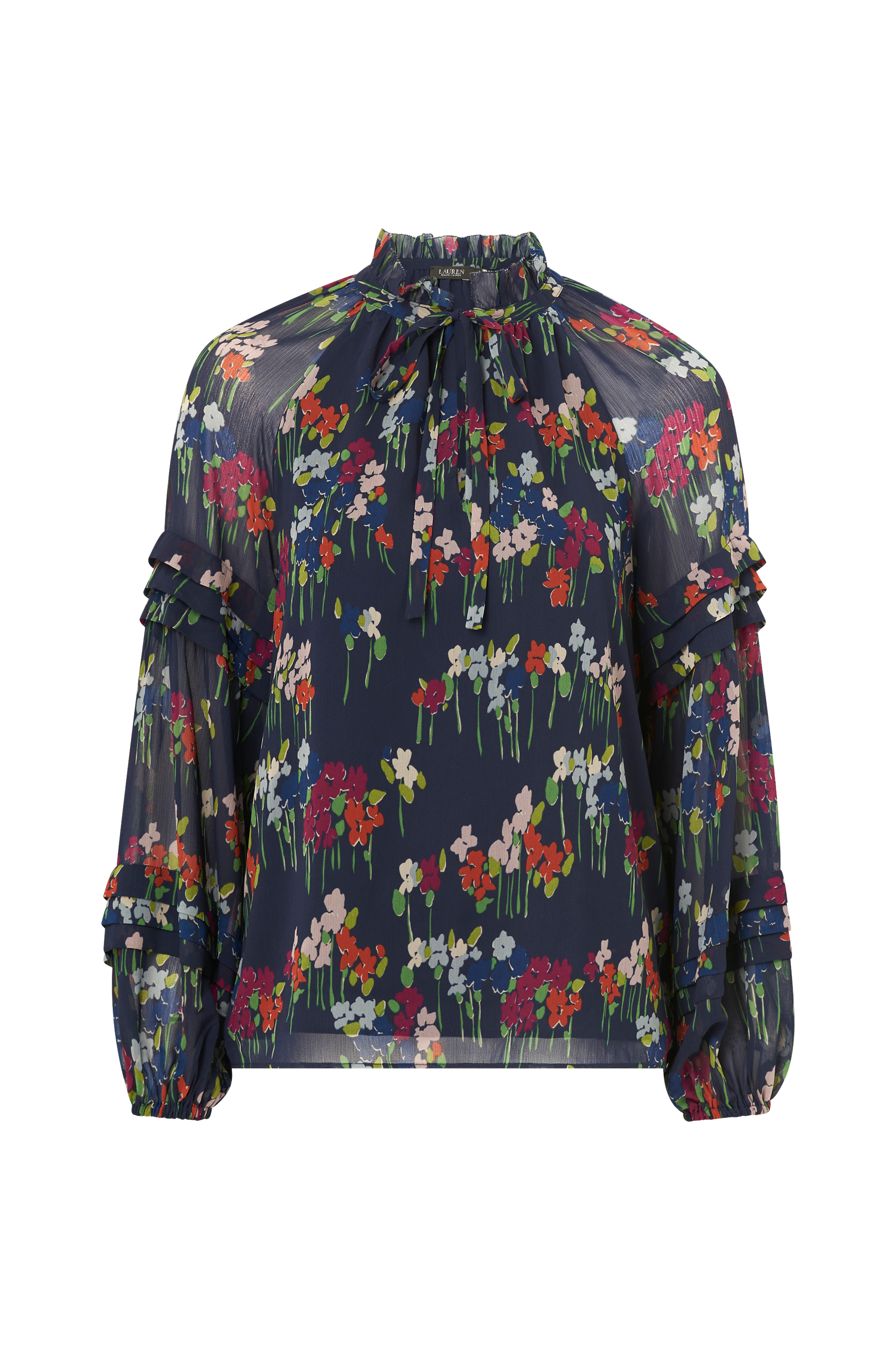 • Fôret bluse• Halvtransparent materiale• Ugjennomsiktig foring• Rund halsringning med volangkant og skjær med knytbar tråd foran• Lange, ufôrete ballongermer med volangdetaljer og elastisk strikk i ermeslutten• Lengde: 67 cm i størrelse S