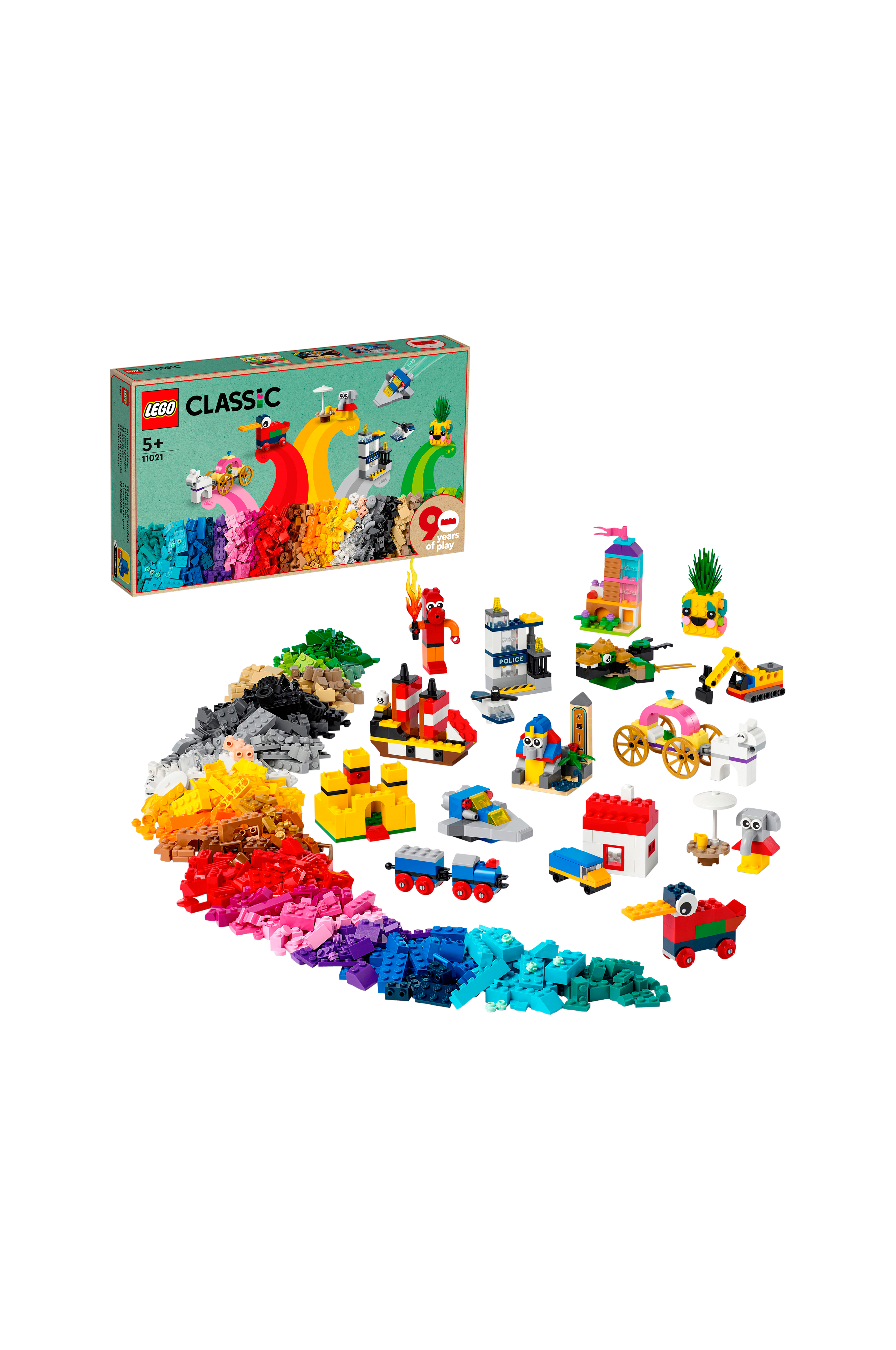 Barn, voksne og besteforeldre får timevis med gøyal nostalgi med byggesettet LEGO® Classic 90 år med lek (11021).