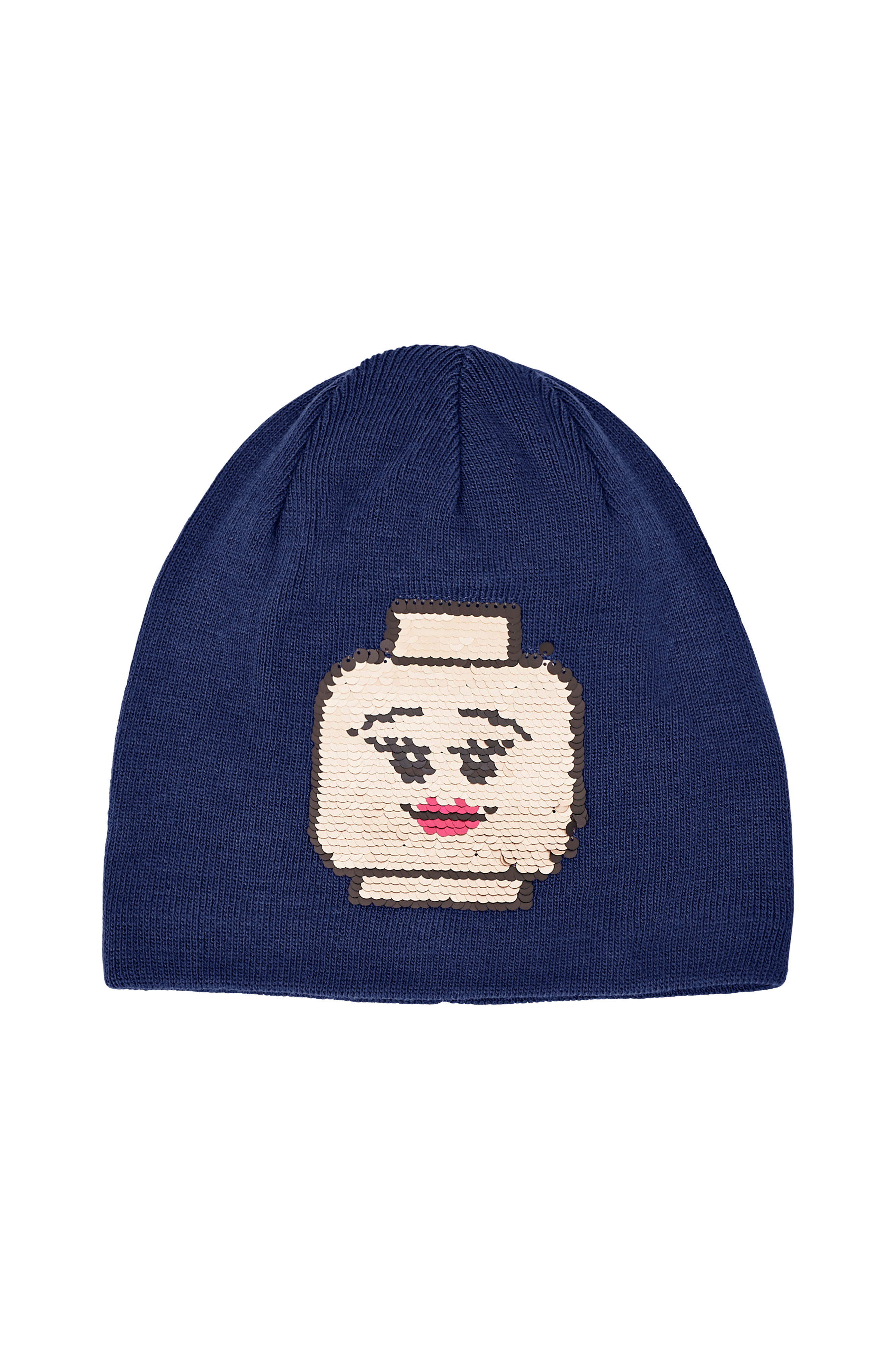 Strikket lue lwAndrea 701 fra Lego Wear med en applikasjon av skimrende, vendbare paljetter. Refleksdetalj bak.