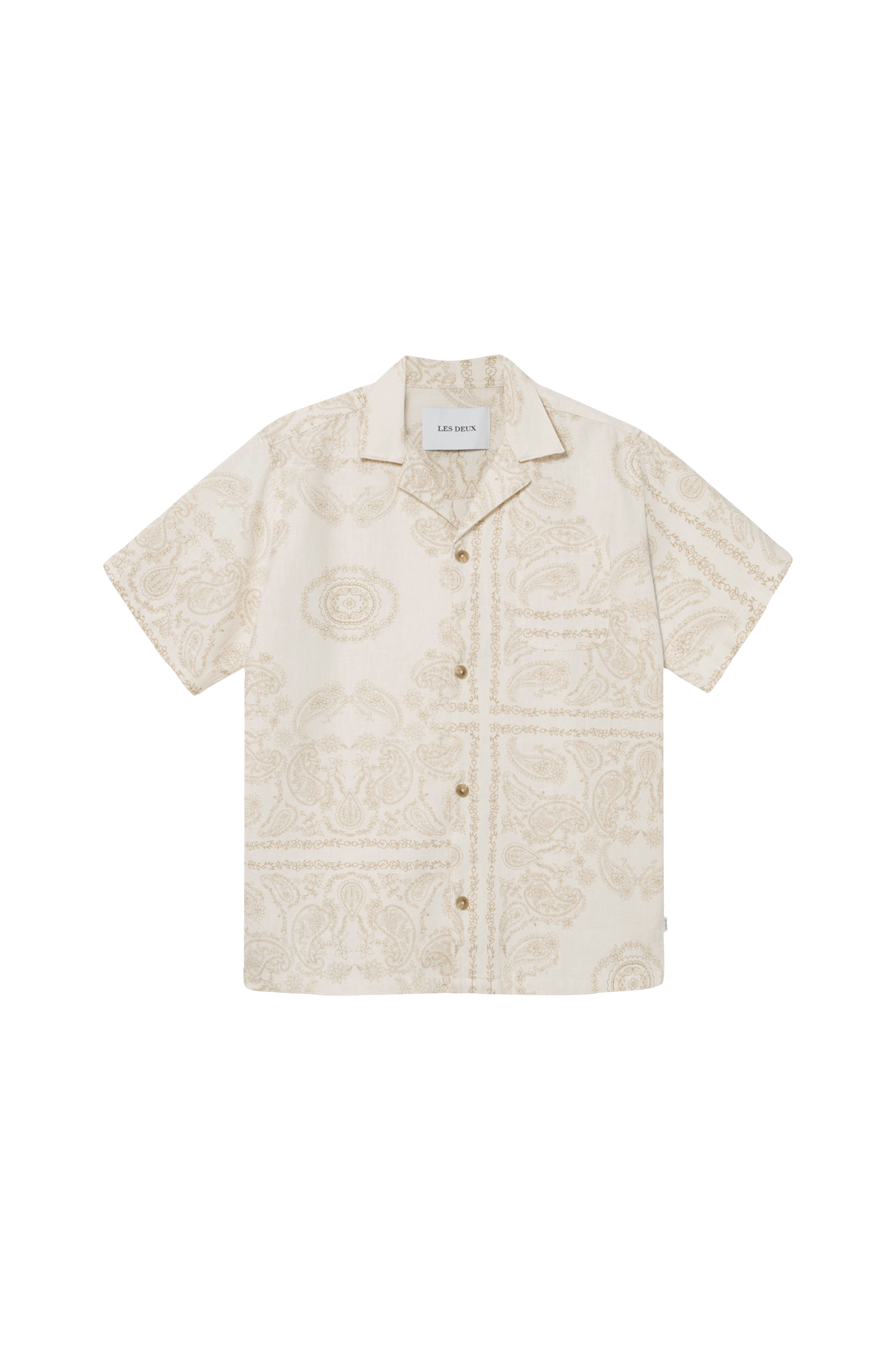 • Mønstret skjorte i rami• Krage med jakkeslag• Knapper foran• Korte ermer• En brystlomme