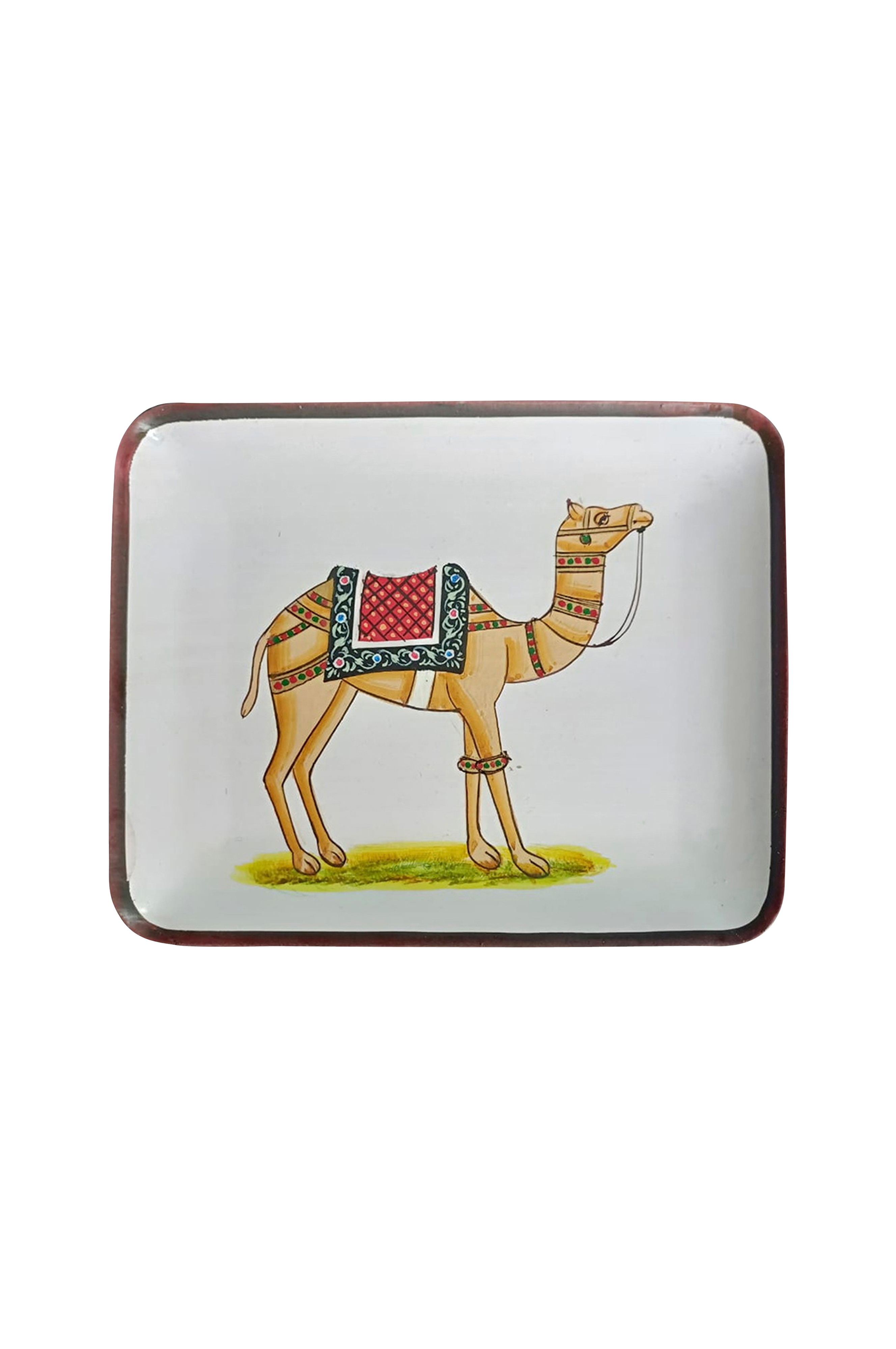 Håndmalt brett av jern, perfekt til den lille lunsjpausen eller som dekorativ detalj i hjemmet. Mål: 15x12 cm.