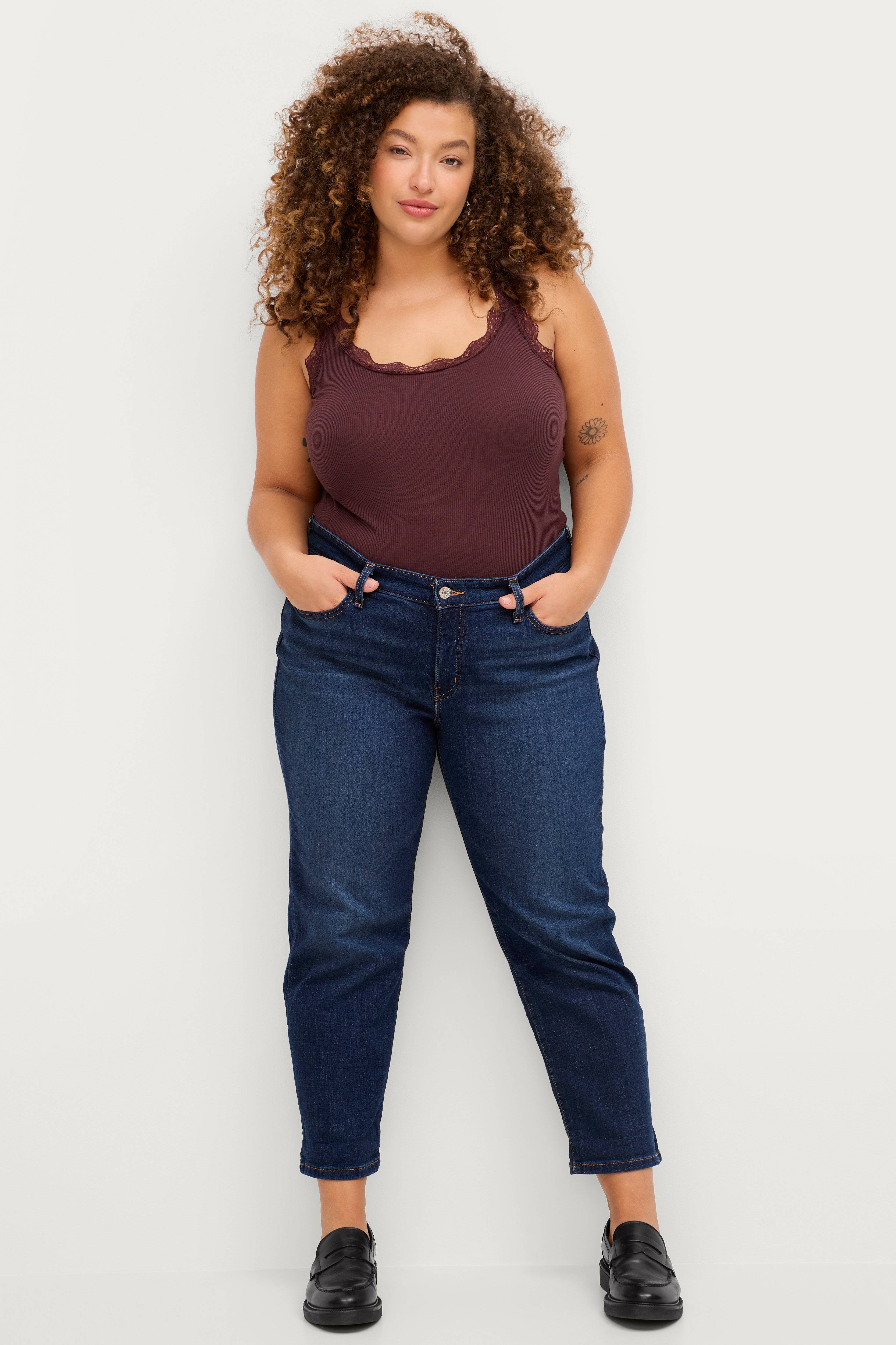 • Femlommemodell• Avsmalnende bein• Avslappet passform• Lynlås• Laget av stretch denim• Plusstørrelser