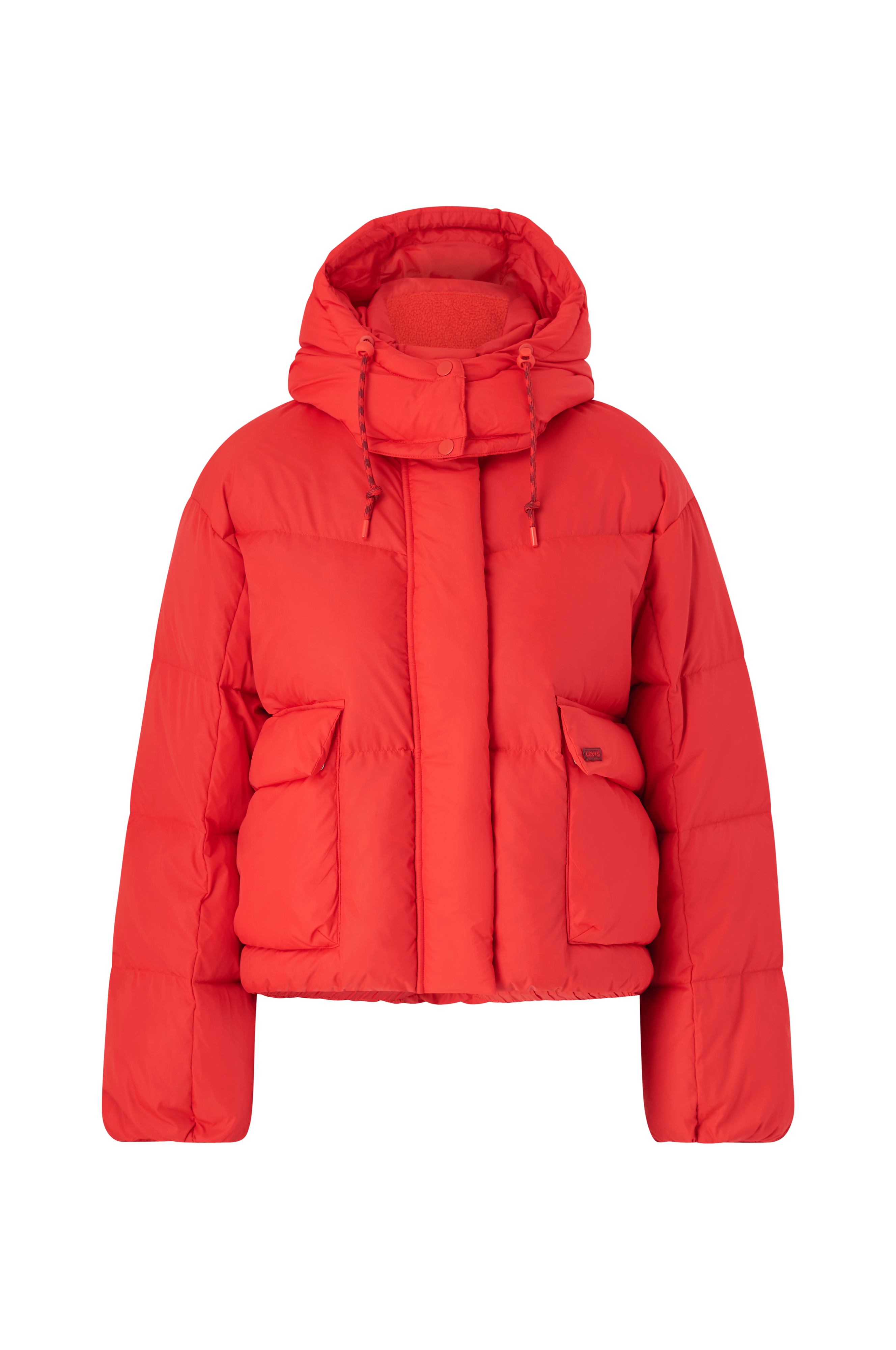 • Vannavstøtende ytterstoff • Avtagbar hette med snøring • Høy krage med innside i fleece • Glidelås • Klafflomme over glidelåsen med trykknapper • To sidelommer • To ytterlommer med kneppbare lokk • Gummistrikk i ermeslutten og i nedre kant • Lengde: 62 cm i størrelse S