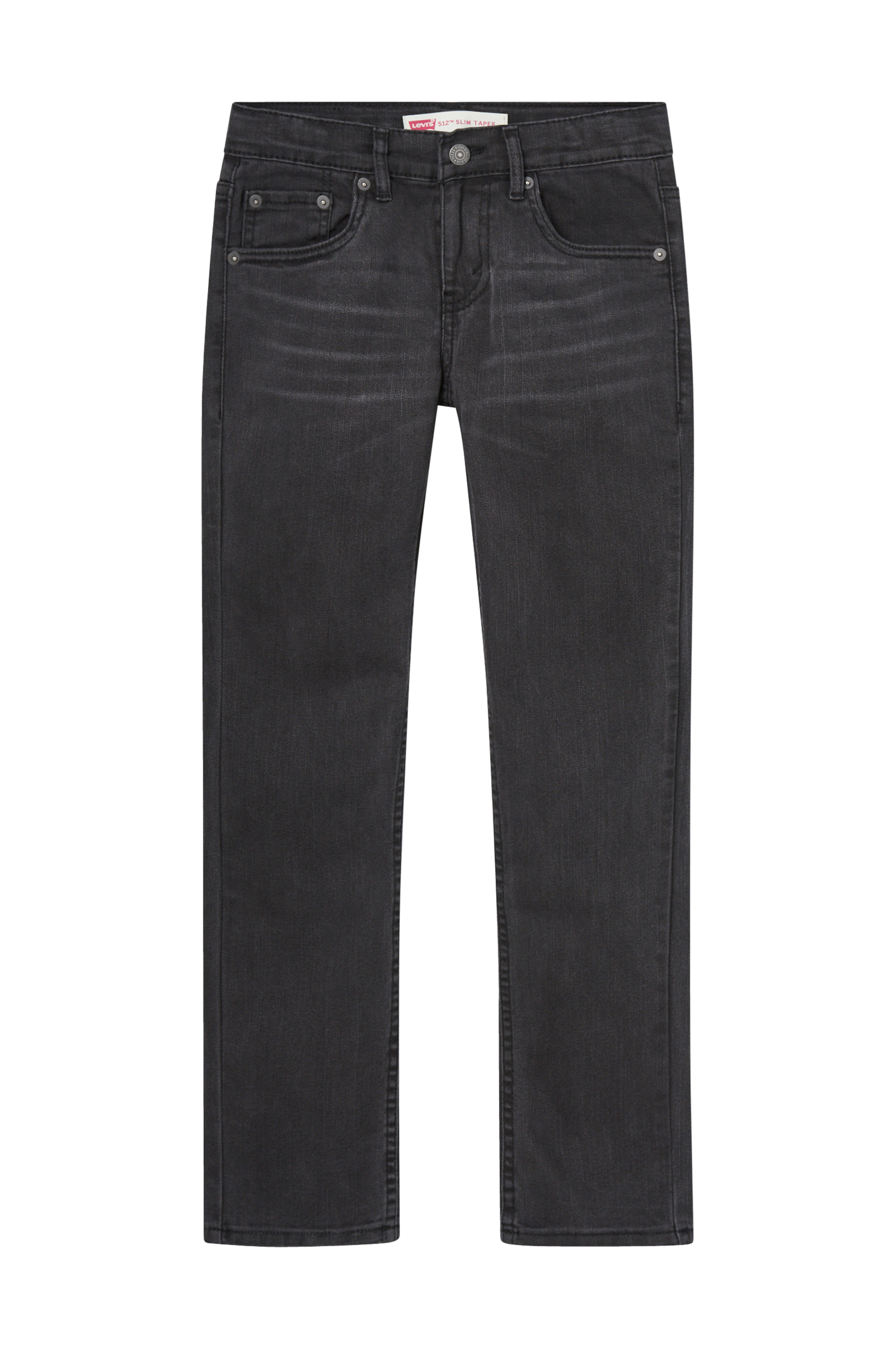 Stretchjeans med smal passform og avsmalnende benkanter. Femlommersmodell med glidelåsgylf.