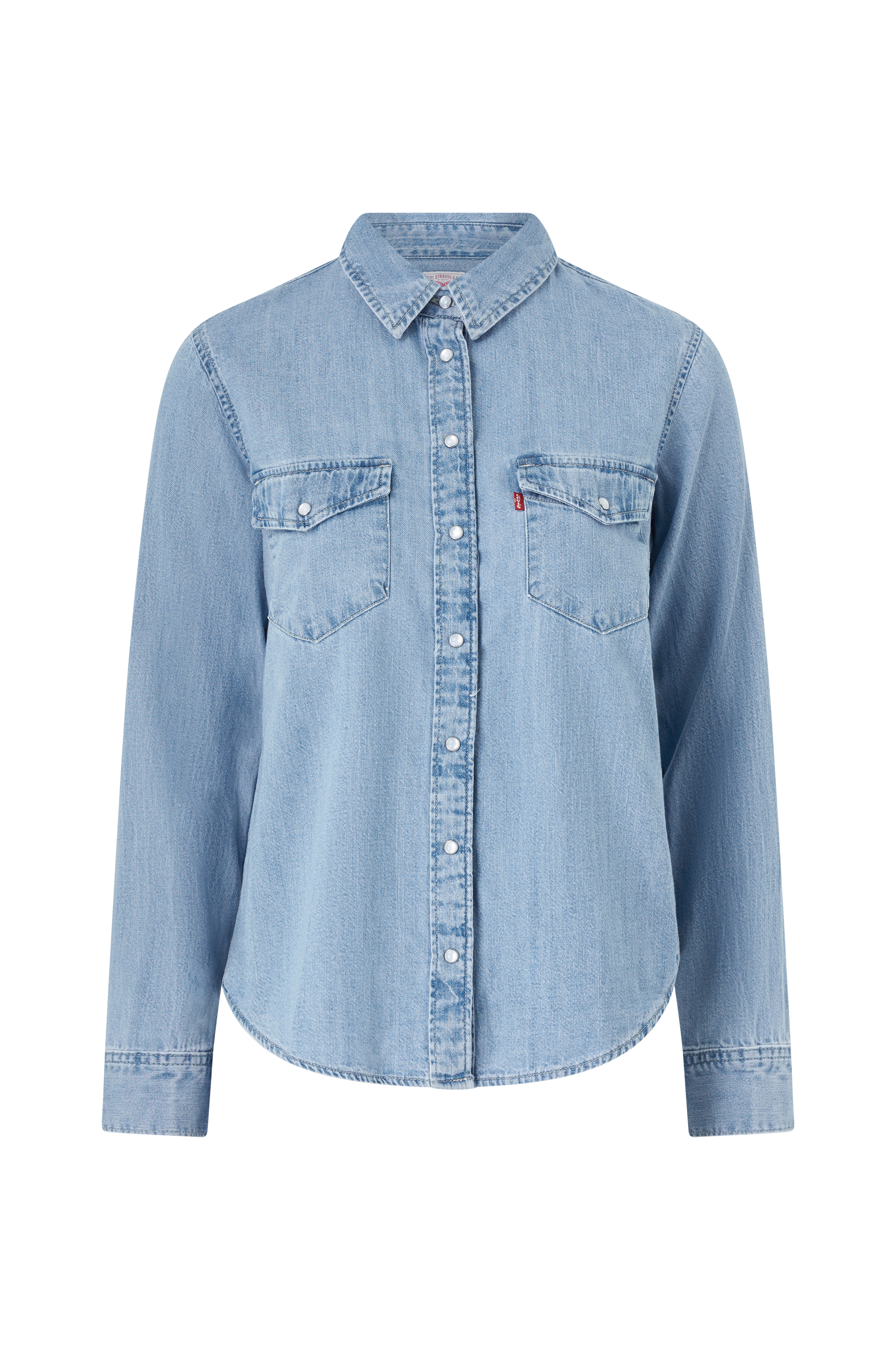 Jeansskjorte Essential Western Going Steady fra Levi's. Lett figurformet modell med liten krage og trykknapper hele veien foran. V-skåret bærestykke bak, og brystlommer med klaff.