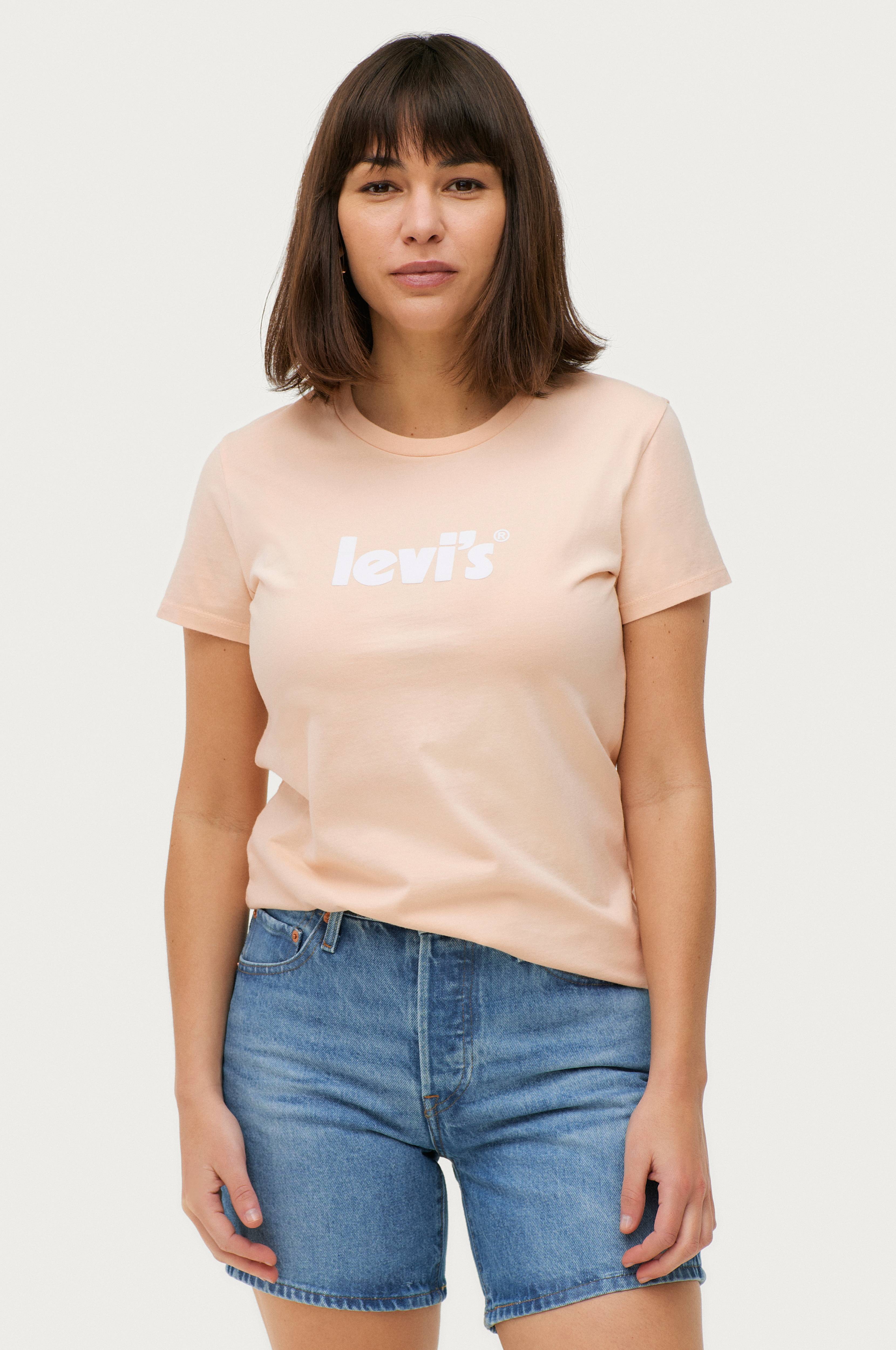 Topp The Perfect Tee fra Levi s med trykt logo på brystet. Kort erme og vid hals med ribbet kant. Lengde ca 60 cm i str M.