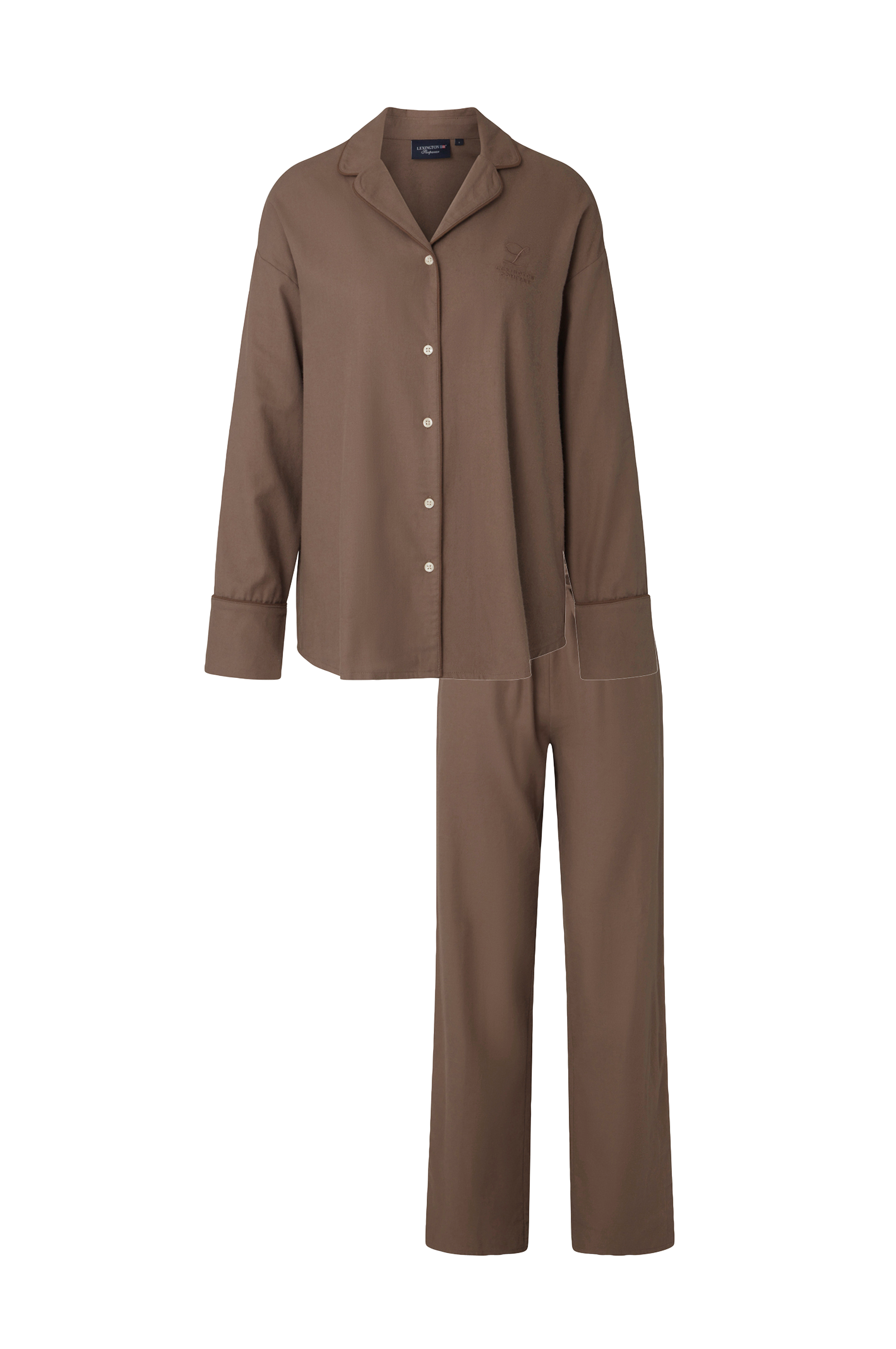 Når dagene blir kortere og nettene kaldere, vil du elske å kose deg i vårt Caroline-pyjamassett i flanell. Settet er laget av vår supermyke 100 % bomullsflanell, og vi har gitt det alle de klassiske stiltrekkene til en tradisjonell pyjamas og avsluttet det med detaljer i mansjetter og krage. Slapp av i den overdådige dressen og få morgenene til å vare bare litt lenger. Dagen kan vente.
