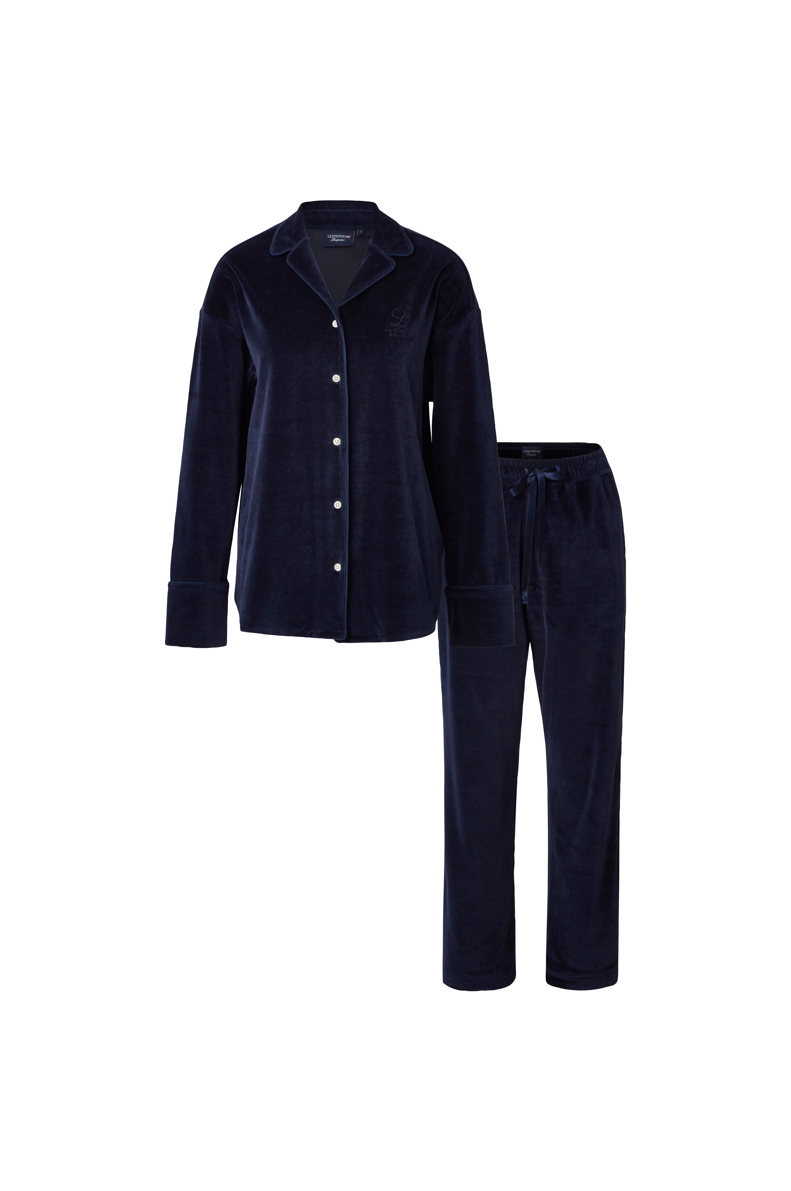 Vårt Caroline-pyjamassett i velur er den ultimate klassiske komforten for rolige vinterkvelder eller late dager hjemme. Overdelen har lange ermer, knapper foran og detaljer med pastiller som gir den perfekte finishen. Vi har designet underdelen med en ytterst komfortabel midje med elastisk snøring i midjen. De vide bena gir en behagelig avslappet stil. Laget av 100 % bomull i en enkel svart farge som passer perfekt for sesongen, og du vil drømme søte drømmer hele sesongen.